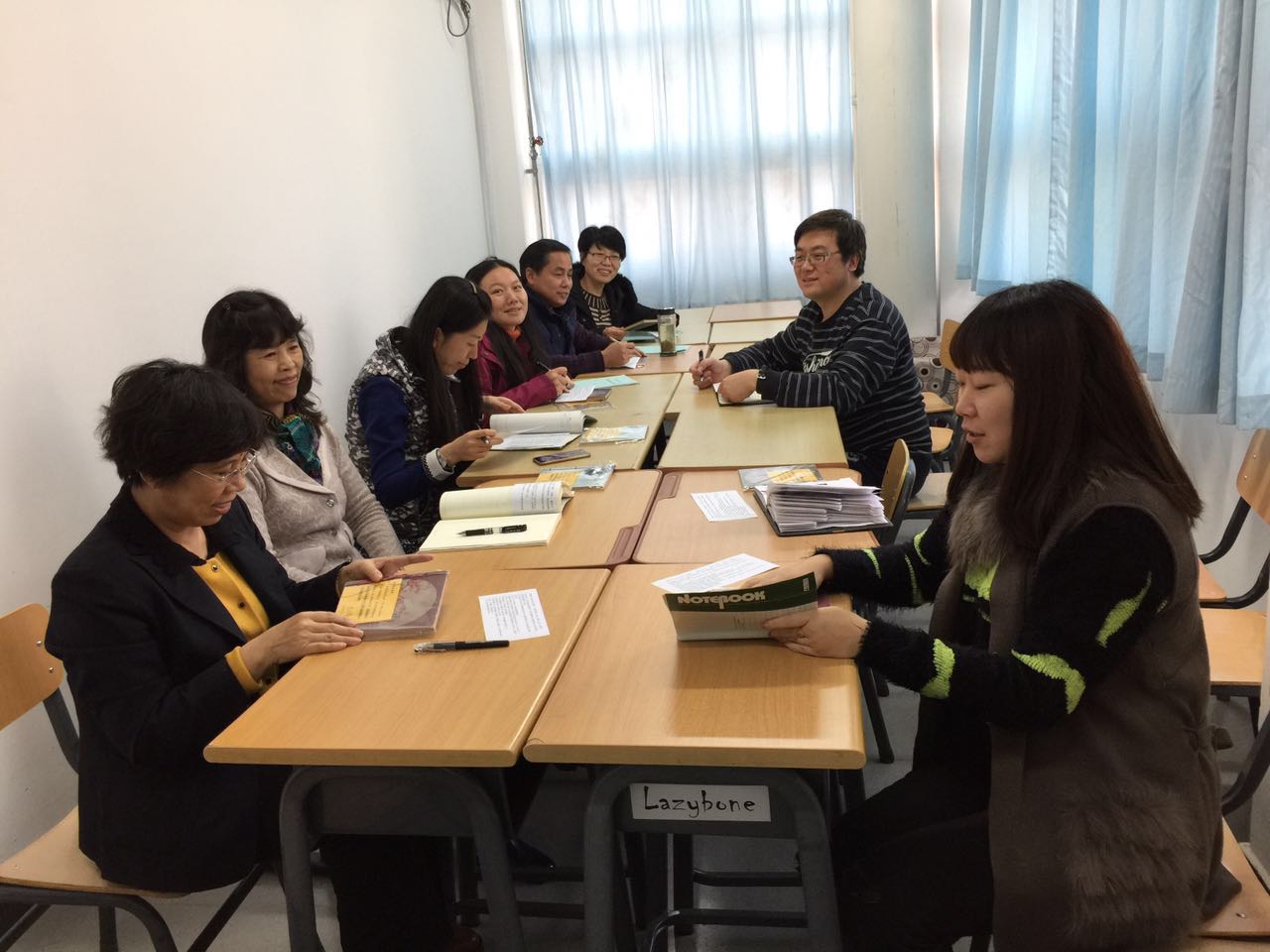 2015年12月21日下午语文教研组全体成员在512教室举行教研活动,活动有虞昌华老师主持。