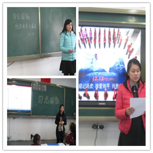 接着,少先队大队辅导员李文霞老师作了“勿忘国耻——南京大屠杀70周年纪念日”的讲话,让大家永远铭记民族的苦难,铭记我们今天的和平是先辈们用鲜血换来的。在整个讲话的过程中,每个班级都做到了认真聆听,并对那些为了民族的伟大事业牺牲的先辈们做了默哀仪式。