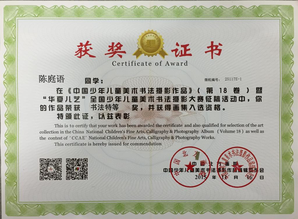 书法一等奖: