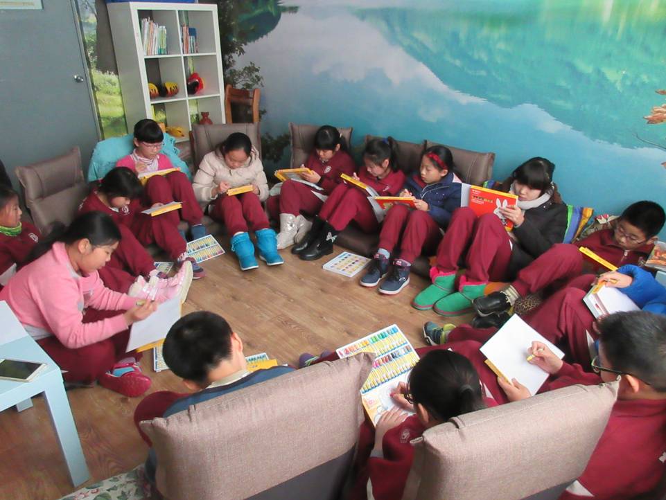 小学社团绘本读书沙龙活动中,学生们全情投入地用绘画表达内心情感