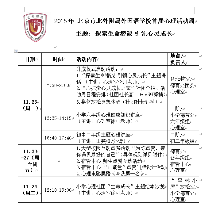 11月23日,我校举行首届心理活动周启动仪式暨第12周中学生升旗仪式。本次活动以“探索生命潜能、引领心灵成长”为主题。