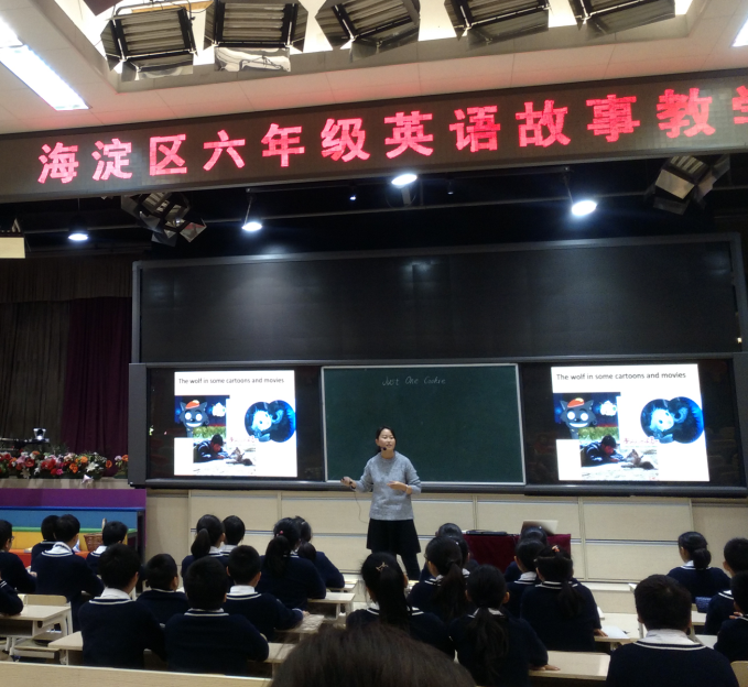 11月25日下午,海淀区六年级全体教师在人大附小开展了以“海淀区六年级英语故事教学研究”为主题的英语教研活动。此次教研活动分别由来自翠微小学的宣老师带来的一节Cinderella和人大附小的姜老师带来的一节Just one cookie的故事阅读课。