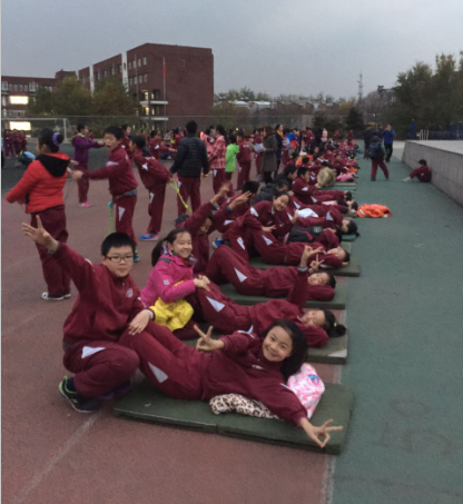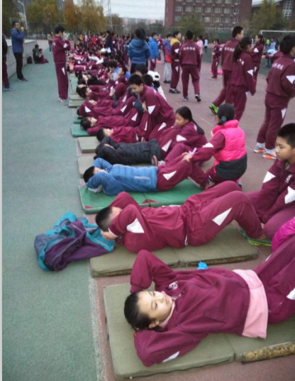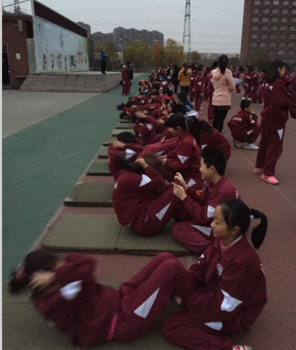 11月18日大课间,六年级部的同学们参加了“仰卧起坐达人赛”。比赛规则很简单,限时一分钟,谁做的次数最多谁获胜。同学们踌躇满志。双手放于脑后,哨声一响,便飞快地坐起、躺下,重复运动着。有的同学累了,仍然不放弃,双手抱着头、憋着劲,一次次努力地想往上坐起。那一刻,围观的小选手们齐声为他喊起了“加油,加油!”。