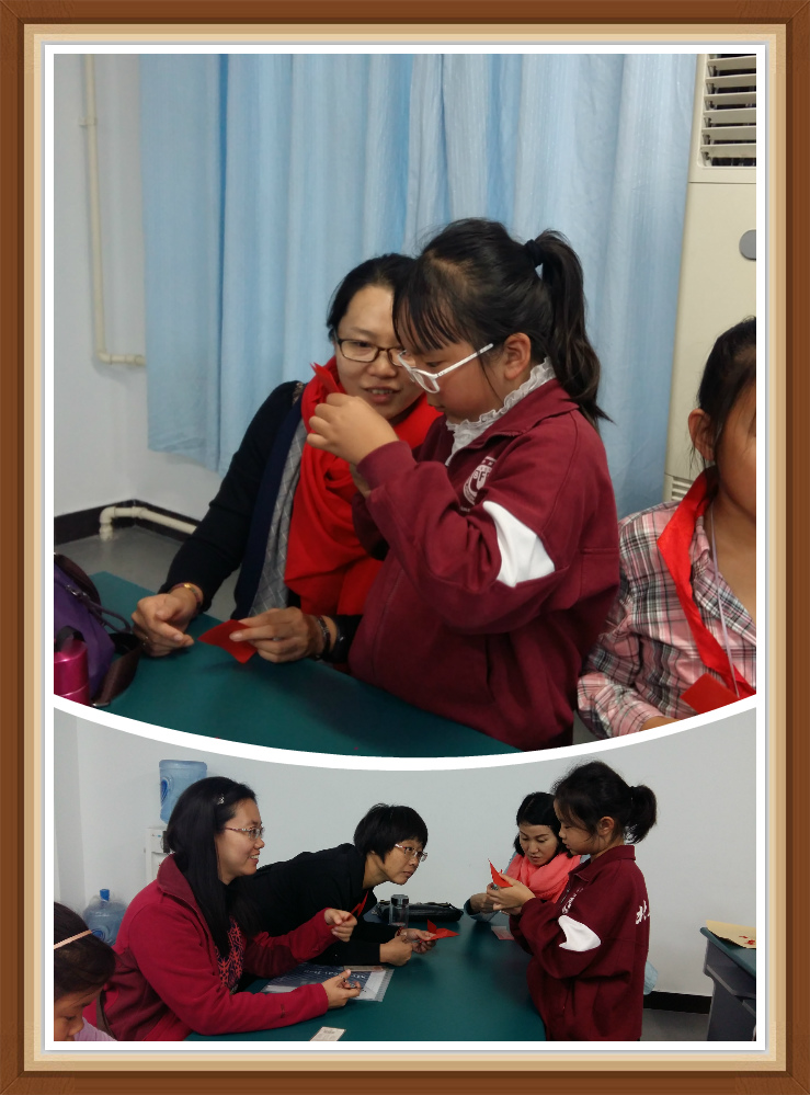 但理想很伟大,现实却是--拿起剪刀和红色宣纸却迟迟不敢下剪刀,有学生问能先画再剪吗?我鼓励学生,“剪刀就好比你的画笔,直接剪才能剪出最灵动的作品来,只有到后面我们剪较为复杂、连接点比较多的时候才允许画简稿,大胆尝试一下吧!”现在已经是第八次课了,学生已从最初的颤颤惊惊,到现在能轻松剪出流畅的线条,最令我吃惊的是剪一个较为复杂的团花时他们都是不画稿,直接剪的!学生的那种自信让我有了无比的成就感!中国的传统文化不缺传承人!