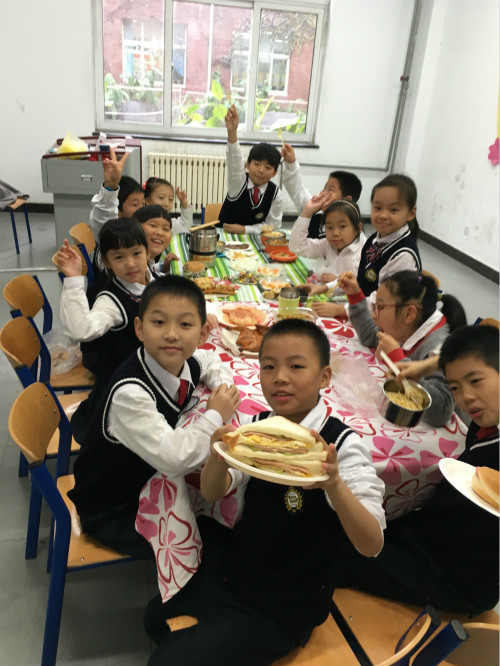 这堂课主要分为四个环节,首先是学生们的开场秀,用英文介绍自己的食物作品;其次是试吃环节,包括就餐礼仪、礼貌待客等熊利老师都做了很好的引导,孩子们在试吃过程中体验到各国食物的美味和差异;第三,对本次在餐桌上出现的食物进行总结以及让孩子们自己分别哪些是健康的食物,哪些是不健康平时需要少吃的食物,孩子们互相讨论,分小组进行总结;最后,熊利老师设计了小组活动,如果你是营养专家,该怎么搭配一天的饮食,让学生们自己制作营养套餐小册子。本堂课熊利老师基于四年级儿童认知发展的特点,充分调动学生参与课堂的积极性,每一位学生都是本次party的负责人,让学生分工合作,在合作中体验学习的带来的快乐。