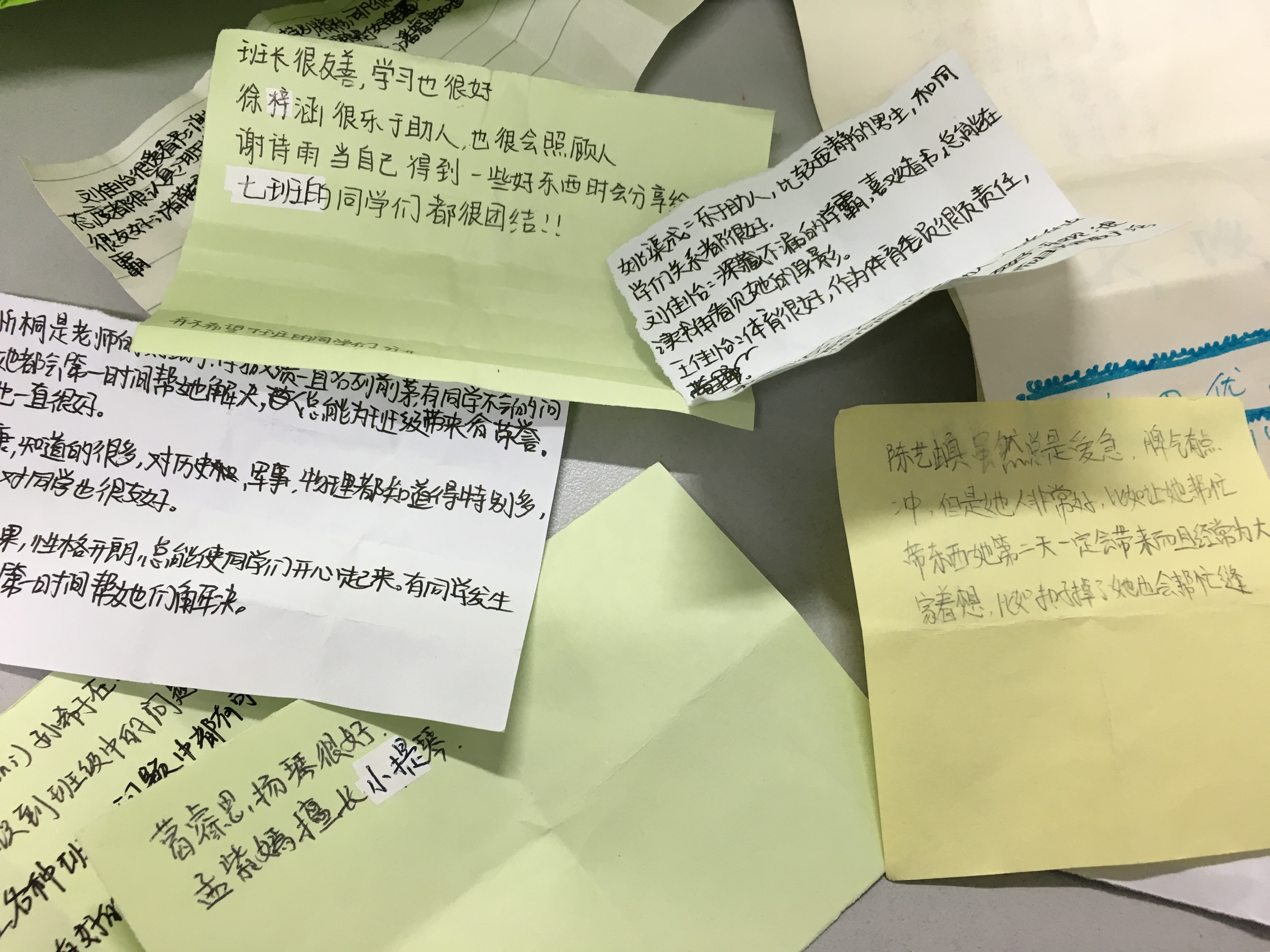在期中考试分析和表彰后,为了弘扬班中正能量、让家长更多了解自己的孩子,班主任安排了 “我也有优点”活动,提前在班中设立优点箱,会上由熊兆宇同学为家长们一一朗读。