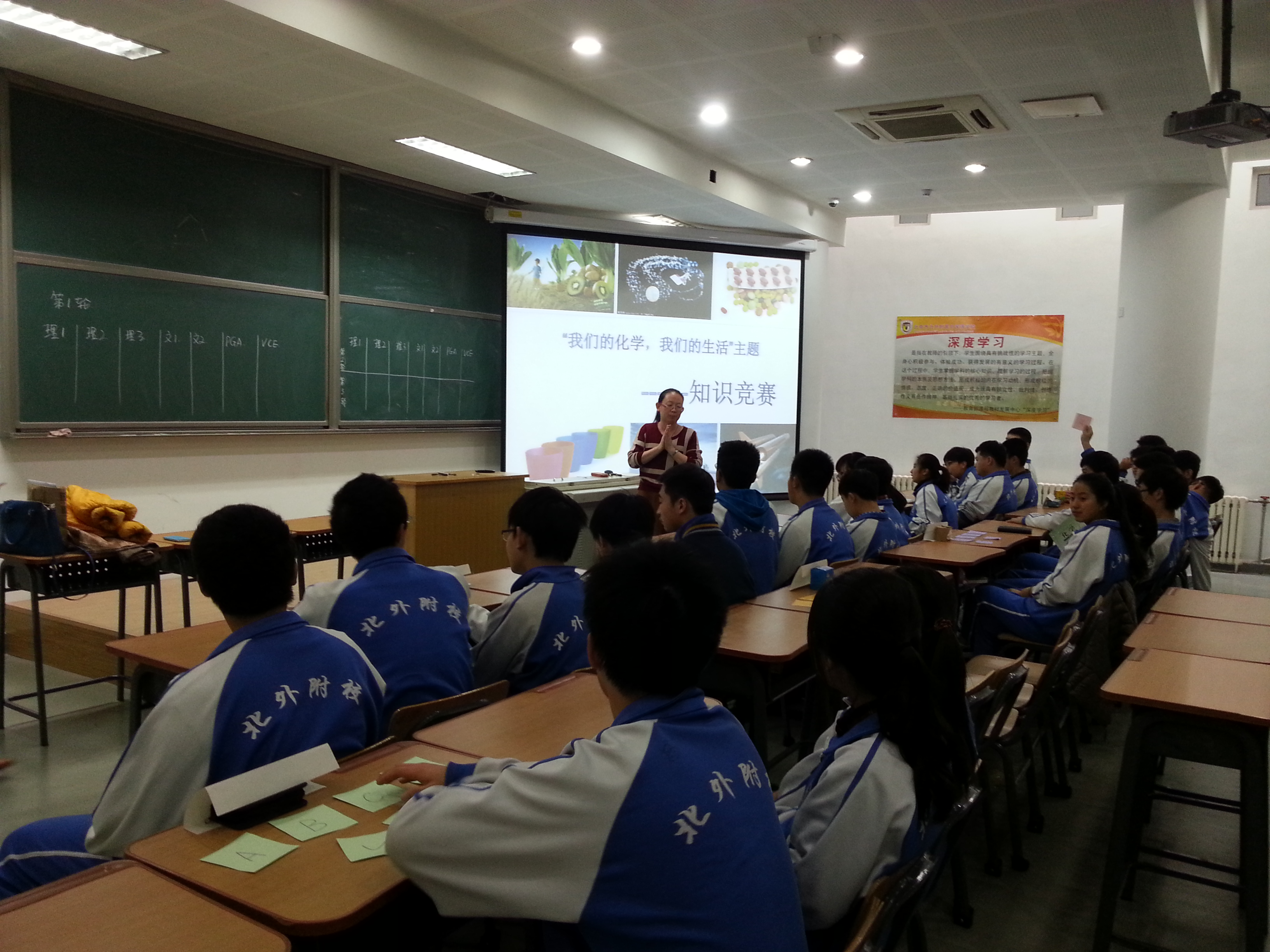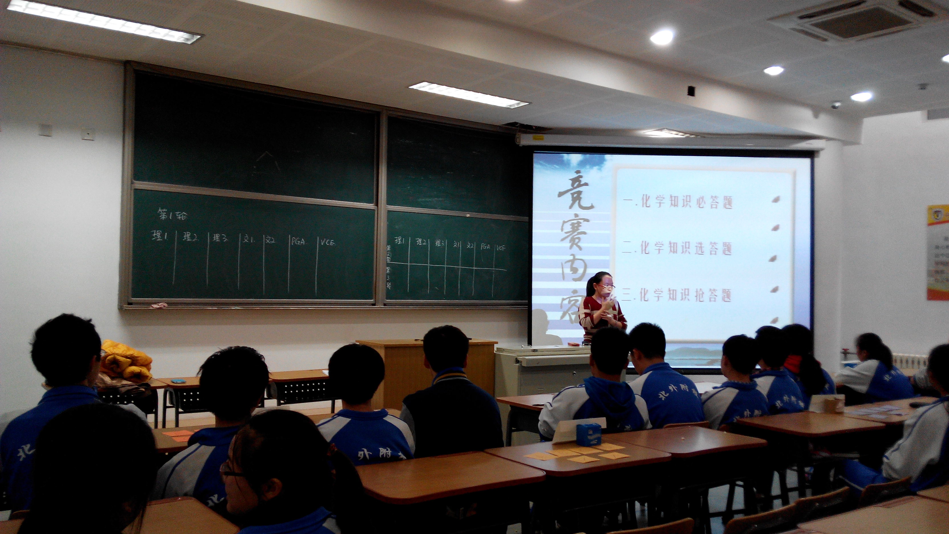 通过此次化学知识竞赛,不仅提高了学生学习化学的积极性,而且拓宽了学生的知识视野、增强了班级的凝聚力。对于学生在答题中对考题提出的更深一步的思考疑问,教师当场进行解答,大大加深了同学们对知识的巩固,竞赛现场气氛紧张而激烈,每位同学都积极思考参与,努力为自己的班级争分。此次化学竞赛对下一阶段的会考复习也起到了很大的促进作用,望同学们再接再厉,在即将到来的2016年北京市化学会考中再创佳绩!