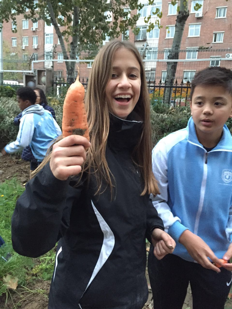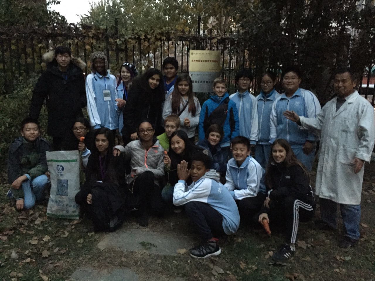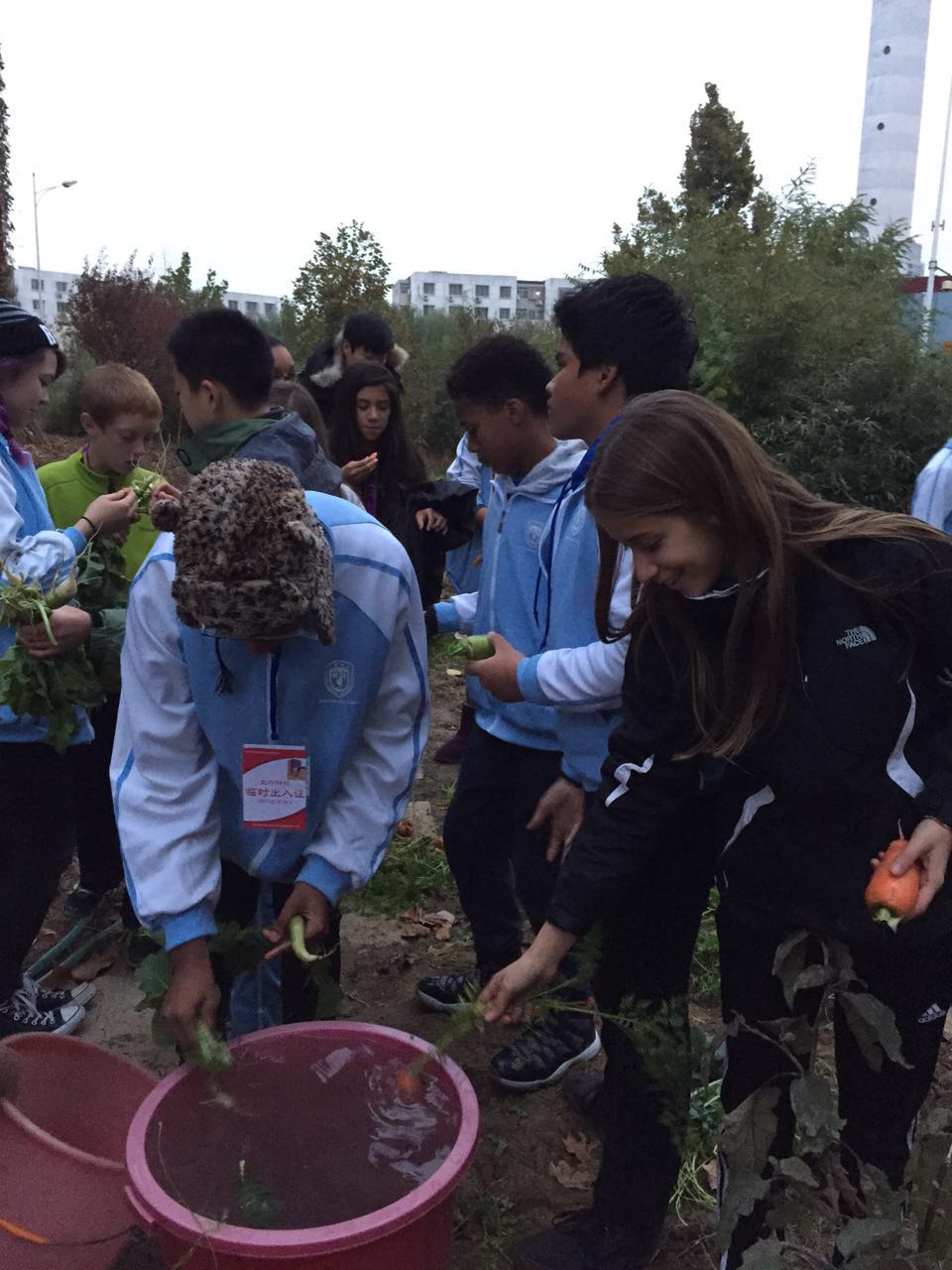 11月17日下午4点半,姊妹校美国芝加哥拉萨尔语言学院师生在初中部德育主任许祥,和开心农场负责人姜新平老师以及初二年级英语老师的陪同下参观了我校的开心农场,活动以初二3班贾宇康同学给美国师生们介绍我校开心农场的创办过程和意图。师生们都表现出浓烈的兴趣和对我校开心农场高度的评价。两校师生一起交流并体验农活,了解农作物的生长习性和培育方法。当孩子们第一次扛起锄头,收获到胡萝卜的时候,激动和欣喜溢于言表,孩子们都迫不及待地品尝自己挖到的胡萝卜。此次活动不仅更进一步增强了中美两国孩子们的感情而且让孩子们体验到了干农活的辛苦和收获,从而拉近了两校之间的友谊。