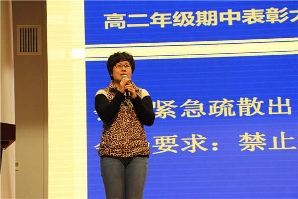 颁奖仪式结束后,年级主任周文杰详尽的汇报了年级组开学以来的工作,使家长们了解到新高二的教育教学和管理特色。一直以来,年级组贯彻“感动式教育”,在严格要求学生的同时给与学生极大的信任。这些工作能够帮助学生养成良好的习惯,树立对未来的信心。特别提到了年级风纪检查员王小红老师,从开学以来不计报酬的为年级做监督管理工作。随后,周老师用照片分享了学生让老师感动的瞬间,向家长们展示了学生的成长,最后,周老师还指出学生在学习和生活中存在的问题,向家长们提出一些具体的建议和要求。