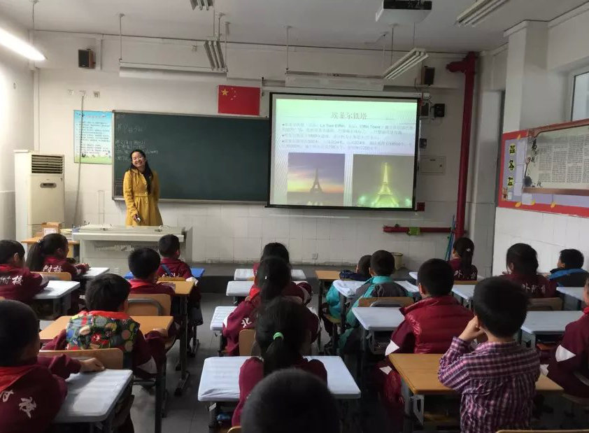 当孩子们看到雄伟壮观的埃菲尔铁塔时,更是齐声惊呼:哇,太美了!的确,用了1万8千多个钢结构,250多万个铆钉的埃菲尔铁塔,早已成为巴黎的城市地标,肖妈妈一一列举相关数据,孩子们连连赞叹。肖妈妈现场客串起了记者,采访了几位去过埃菲尔铁塔的同学,让他们给同学们分享登塔的感受,课堂氛围也愈加活跃。