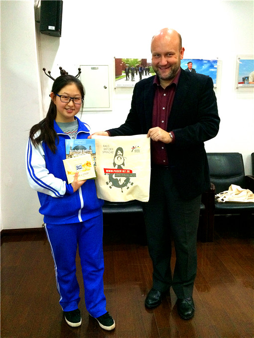 我校高一学生王亦佳、童诗惠和李宜洳参加了本次模拟考试,即将于12月份参加考试的高二及高三的德语学生观看了考试并仔细听取专家的点评和讲解,通过本次的模拟考试,让即将参加C1等级考试的德语学生了解了考试流程及考试技巧, Wolfrum先生祝愿他们在德语等级考试中取得优秀成绩。