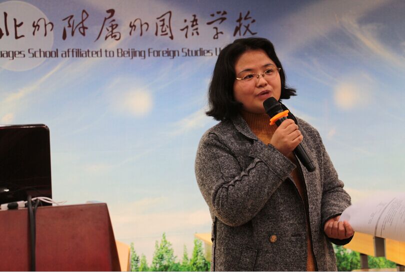 最后,于校长进行总结。她向来宾简要介绍了北外附校的办学理念,指出我校是“基于共同基础的外语特色”。于校长对本节课进行点评,她肯定了宋花蕾老师的语言基本功,指出教师有较强的课堂驾驭能力,课堂设计逻辑线清晰,整节课结构紧凑,知识的呈现与学习循序渐进。于校长同时指出,检验课堂目标的落实,最终要看学生的“得”,教师应以学生的“学”为切入口,摸索适合学生的最佳教学方式,要基于学生的学情设计我们的教学,应该更大胆放手,把更多的时间还给孩子,让学生做到真听,真看,真思、真议,关注到每个学生。针对这节课出现的问题她给出指导性建议:1.课堂超时,导入环节用时过多,建议删减;2.学生的表现和老师的预设有一些落差,要考虑在内容的设置上可以更有梯度性,为学生的学习搭建平台。3、要关注全体学生,而不是只关注一部分,要让所有学生体验成功的快乐,培养其学习英语的兴趣。最后于校长指出,目前我校小学英语教学处于改革上升期,研究教材整合、加大教研力度都对英语老师提出了更高的要求,学校将会加大教师培训力度,提升教师执教能力,进一步提高课堂效率。