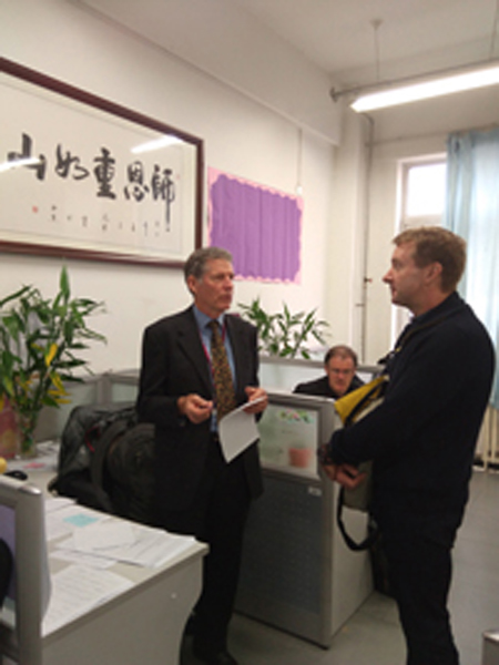 10月26日上午,Glen博士听了VCE外教Misty女士的综合技能英语课后,充分肯定了外教的教学技能,也对学生们的积极提问提出了表扬。课后,Glen博士与外教对VCE的教学又进行了深入的探讨,探讨的目的是为了让VCE学生在原有的良好水平上再有新的突破。