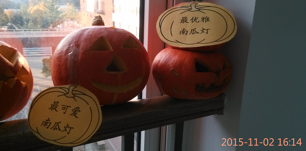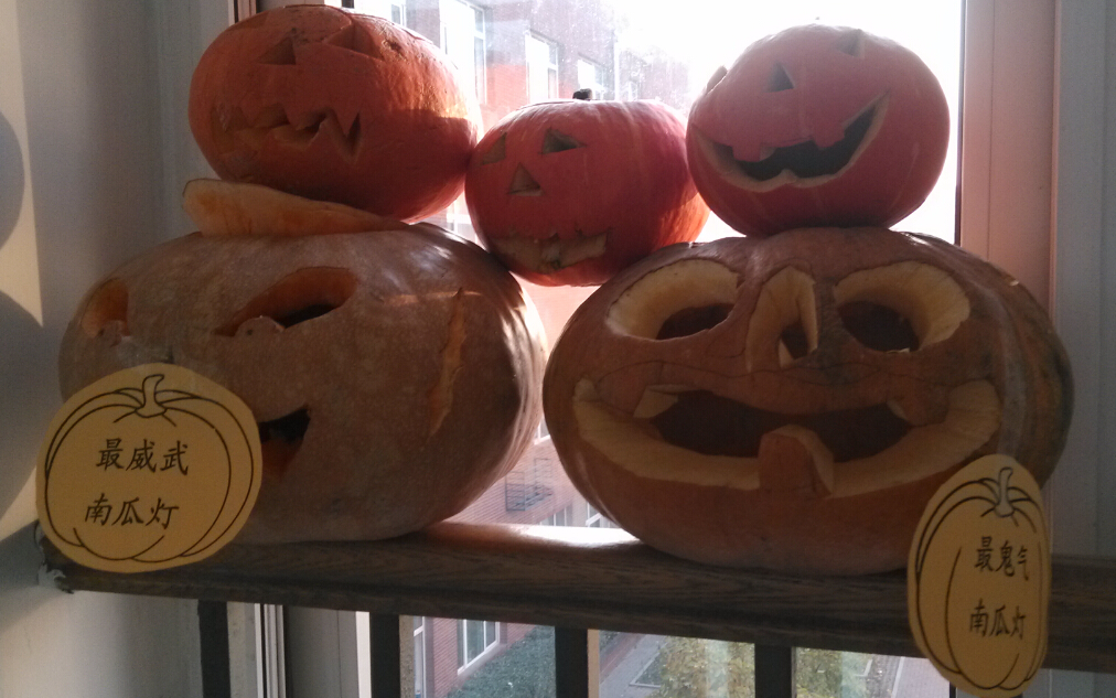 一年一度的万圣节又到了,为了让学生们更加生动地了解和感受万圣节文化,提升学习兴趣并丰富课外活动,初一年级在10月底举办了以“Happy Halloween”为主题的系列庆祝活动。在活动中,同学们尽显其能,涌现出了一批独具创意,丰富多彩的优秀作品。“南瓜灯”的制作成品各具特色,表现出了同学们很强的动手能力。最后,同学们经过投票,选出了优秀“南瓜灯”并分别在年级进行展览。活动产生了 “最优雅南瓜灯”, “最可爱南瓜灯”,“最鬼南瓜灯”,“最威武南瓜灯”,“最创意南瓜灯”,“最霸气南瓜灯”。