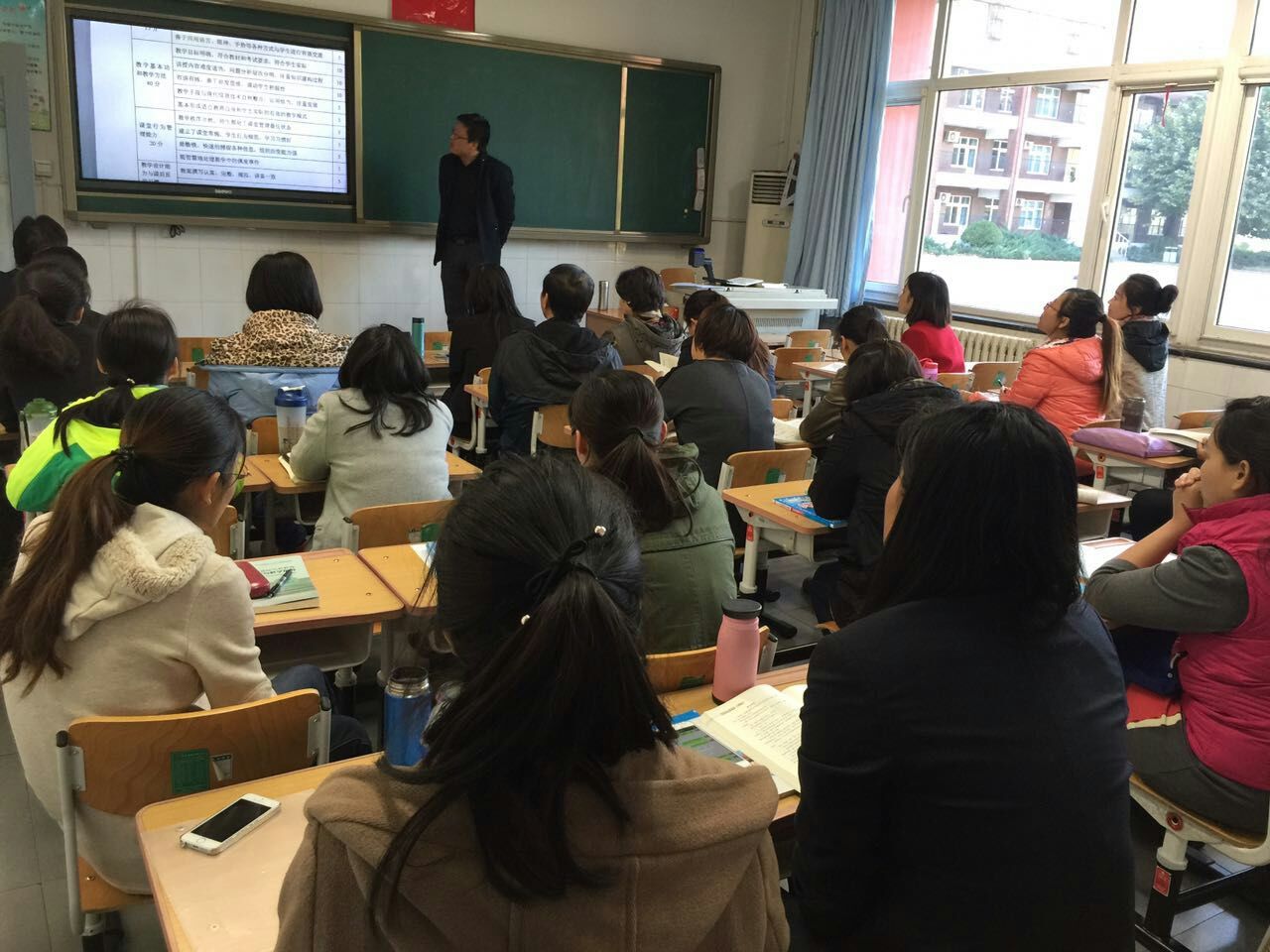 11月31日我校校本教研时间,教务主任李琳走进数学组,与组内全体老师一起参加了教研会。会上,杨青组长带领大家共同学习了“北京市教育科学十二五规划重点课题系列成果学业标准与教学指导丛书”,即“海淀区义务教育学业标准与教学指导”。杨青老师从本书的指导性、实践性两大方面对本书进行了总体介绍。之后重点指出本书指导性方面的优势在于能够深度理解教材,整体把握年段及年级目标;实践性方面要求教师要对教材做到:通读了解→逐项研讨→课堂实践→探索交流。接下来老师们自学后纷纷探讨了对各自年段及对应知识领域的想法,从学业标准、教学关键问题、以及教学案例等角度进行了有见地的剖析。
