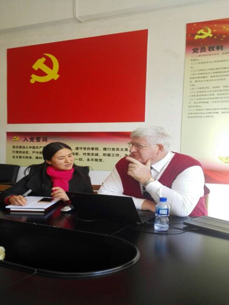 早上,Peter先生一到我校,就约见了我校VCE项目负责人杨继臻并与她做了详细的交谈,交谈中对我校高二VCE班的每个学生的情况做了详细的讨论,同时还沟通了解了高一VCE学生开学两个月以来的各方面情况。