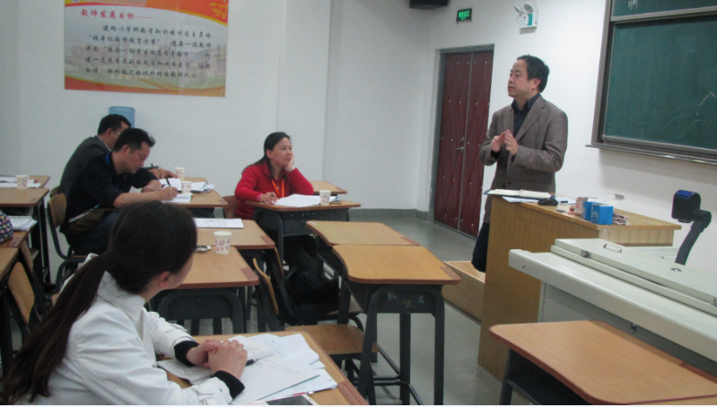 孟威从教研组课题情况的介绍、初三备课组长汇报复习课教学流程、组内评课、领导专家点评等四个方面介绍了此次活动的流程,明确了本学期初中数学组的研究课题是《基于有效教学的初中数学复习课的策略研究》。