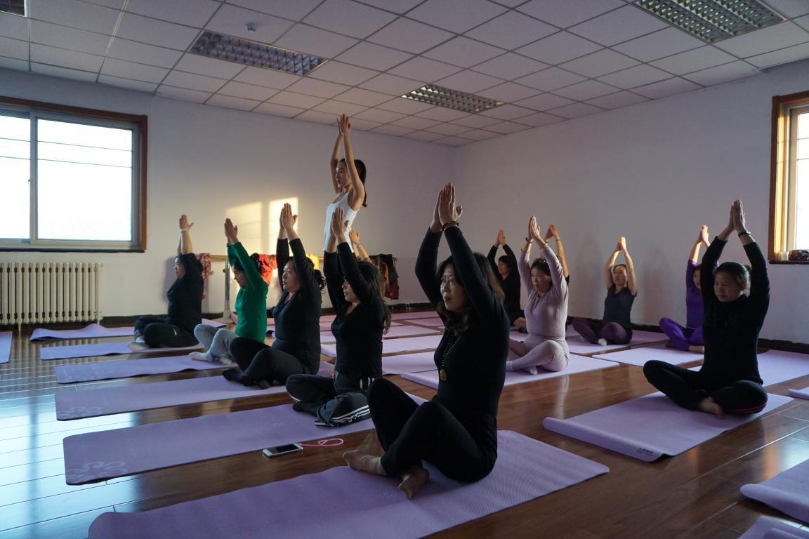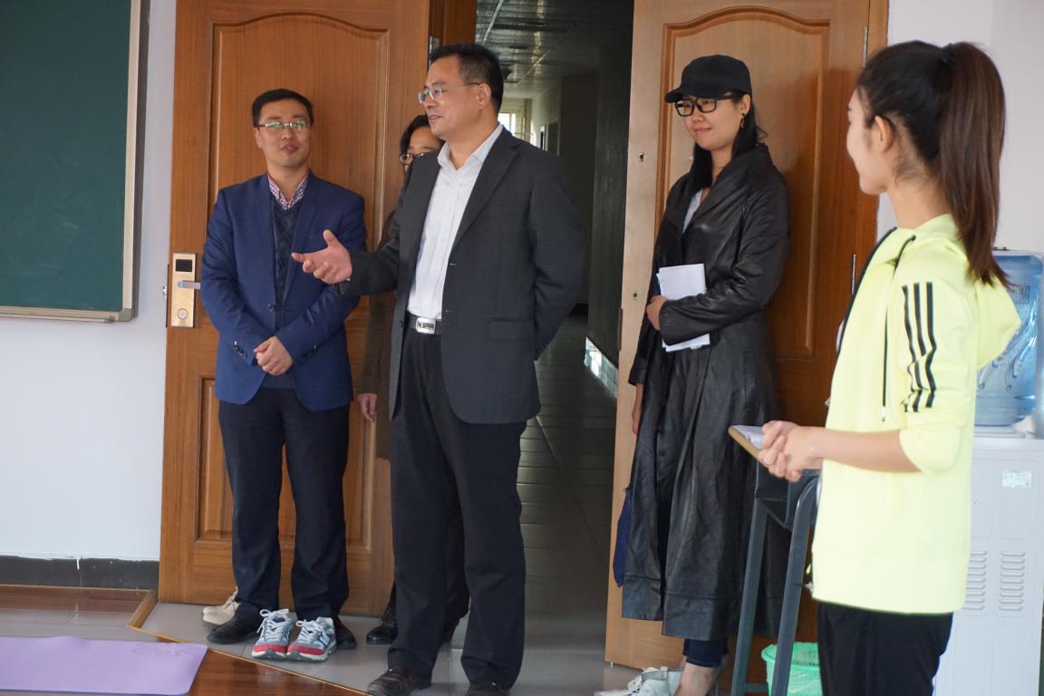 10月23日下午,海淀区教工瑜伽俱乐部首次活动在综合楼舞蹈教室进行,海淀区教育工会副主席杨斌、北外附校副校长、副书记高雁鸣观摩了现场活动。