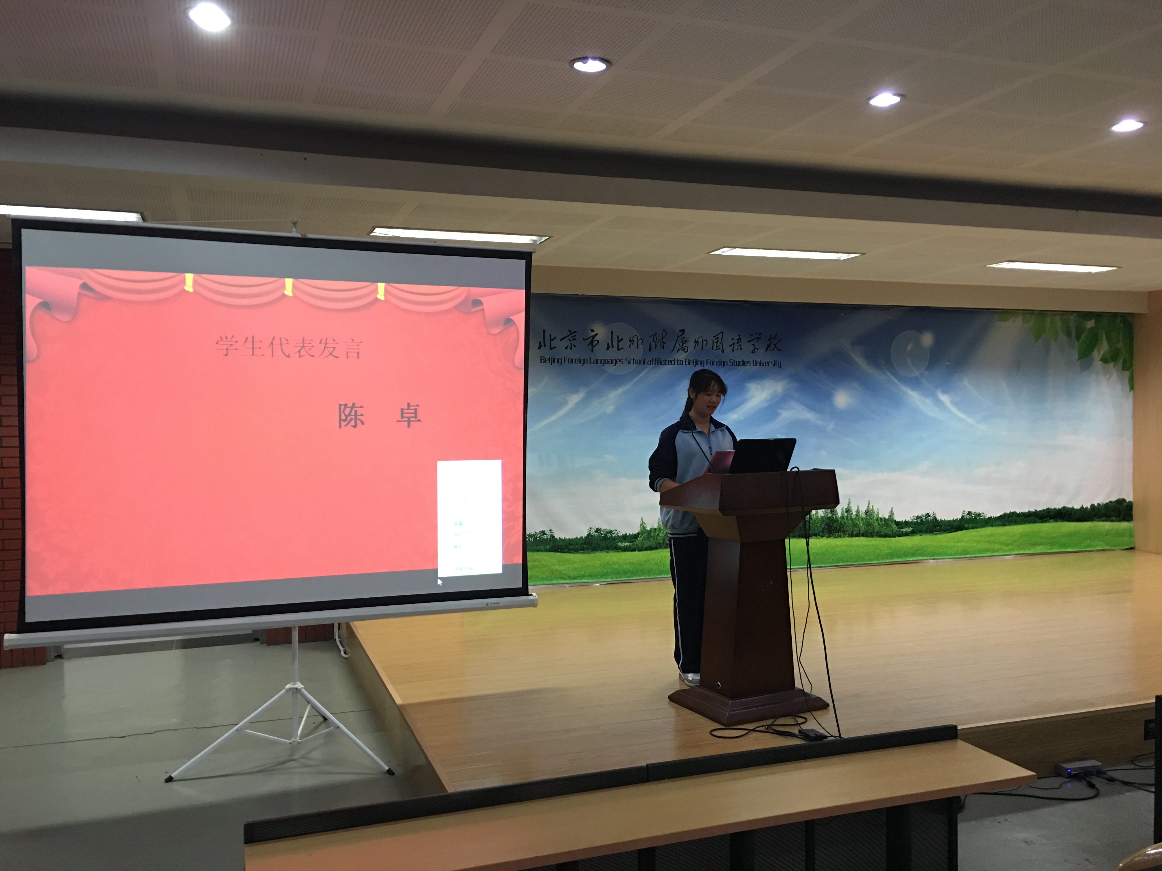 总结会第二部分,由教师代表孟威老师和学生代表陈卓同学发言。孟威老师,强调了即将进行的海淀区统一考试的重要性,以及数学学科的学习及考试的注意事项,对全体同学提出了期望。陈卓同学作为进步生的代表和同学们分享她的学习心得。