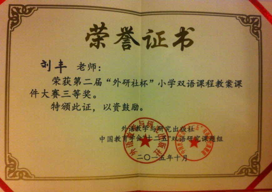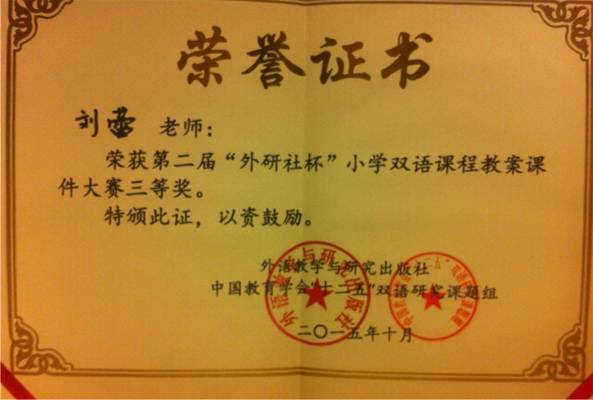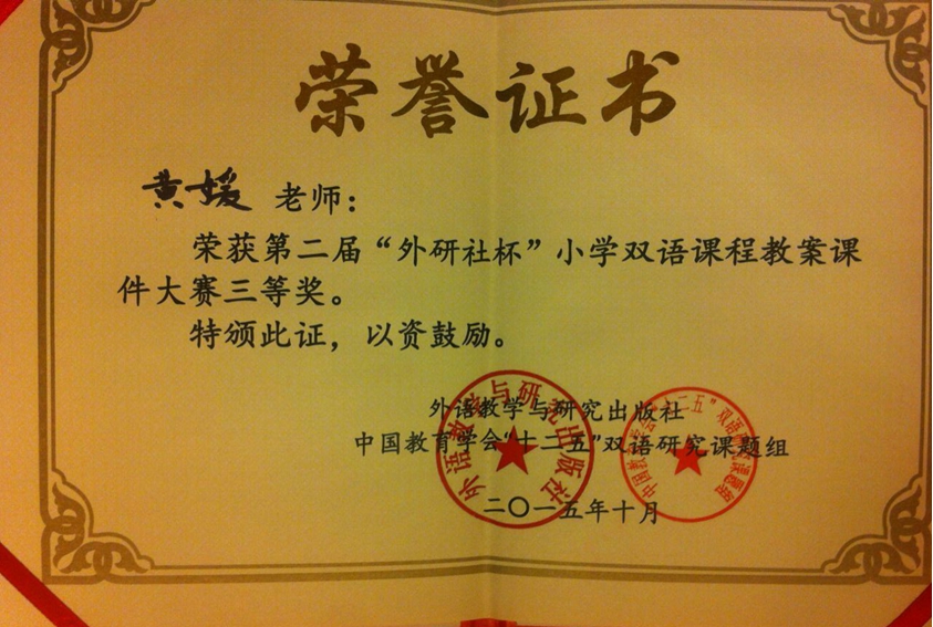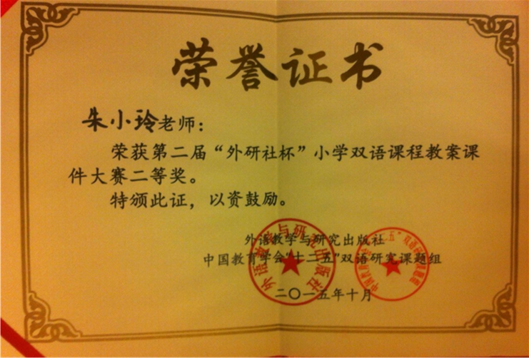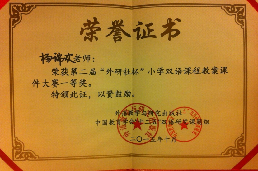 在9月份的第二届“外研社杯”小学双语课程教案课件大赛中, 我校教师喜获佳绩!