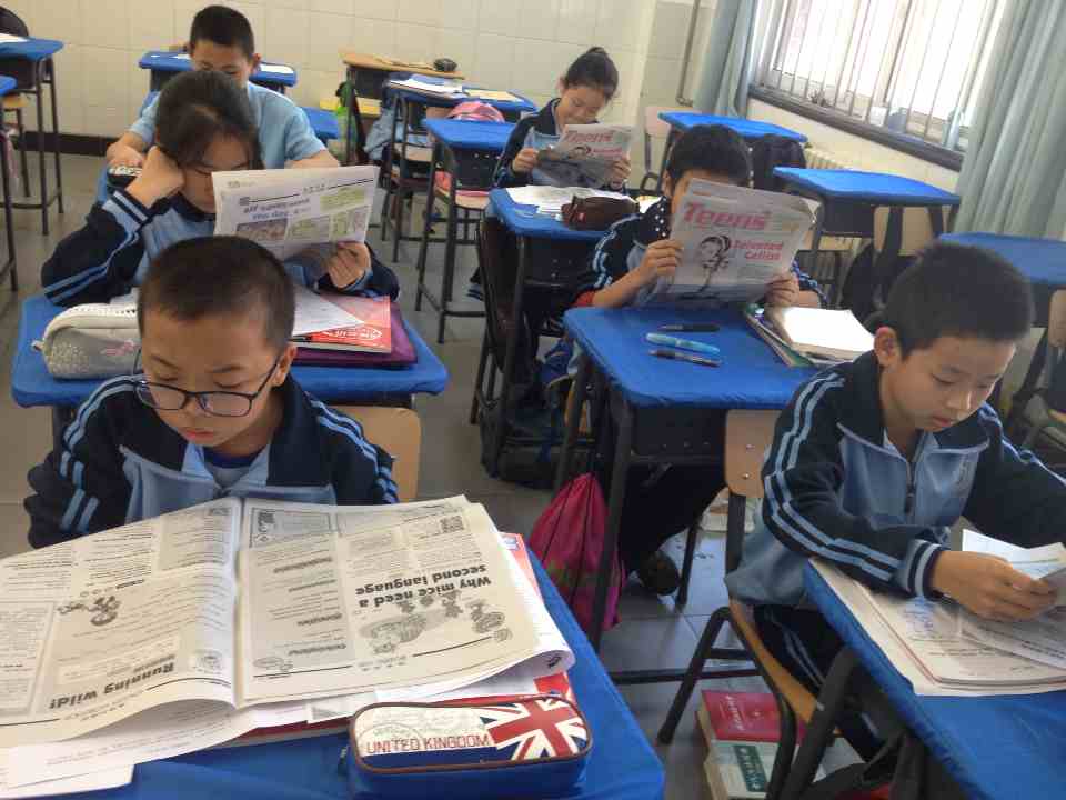 为了提高学生的英文阅读水平,拓展学生的国际视野,初一年级英语组专门开设了每周一次的英语报纸阅读课,并对报刊阅读进行学法指导。