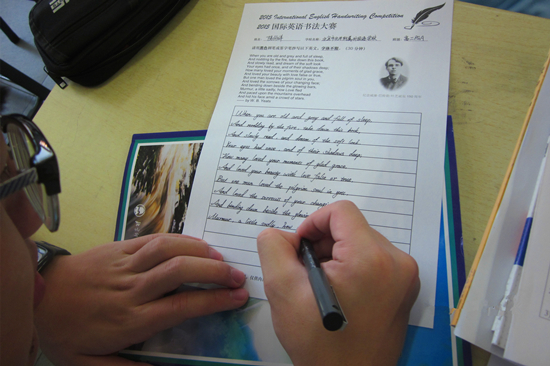 9月23日,高中英语组组织学生利用晨读进行了英文书法大赛,学生们精心书写并上交了作品,预祝他们取得好成绩。