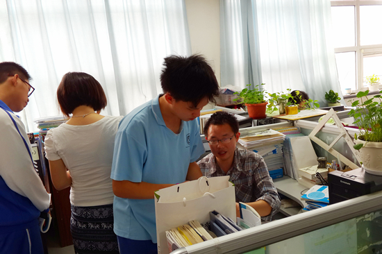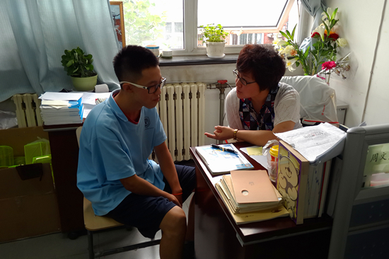 年级主任耐心地学生就生活、学习习惯问题进行讨论