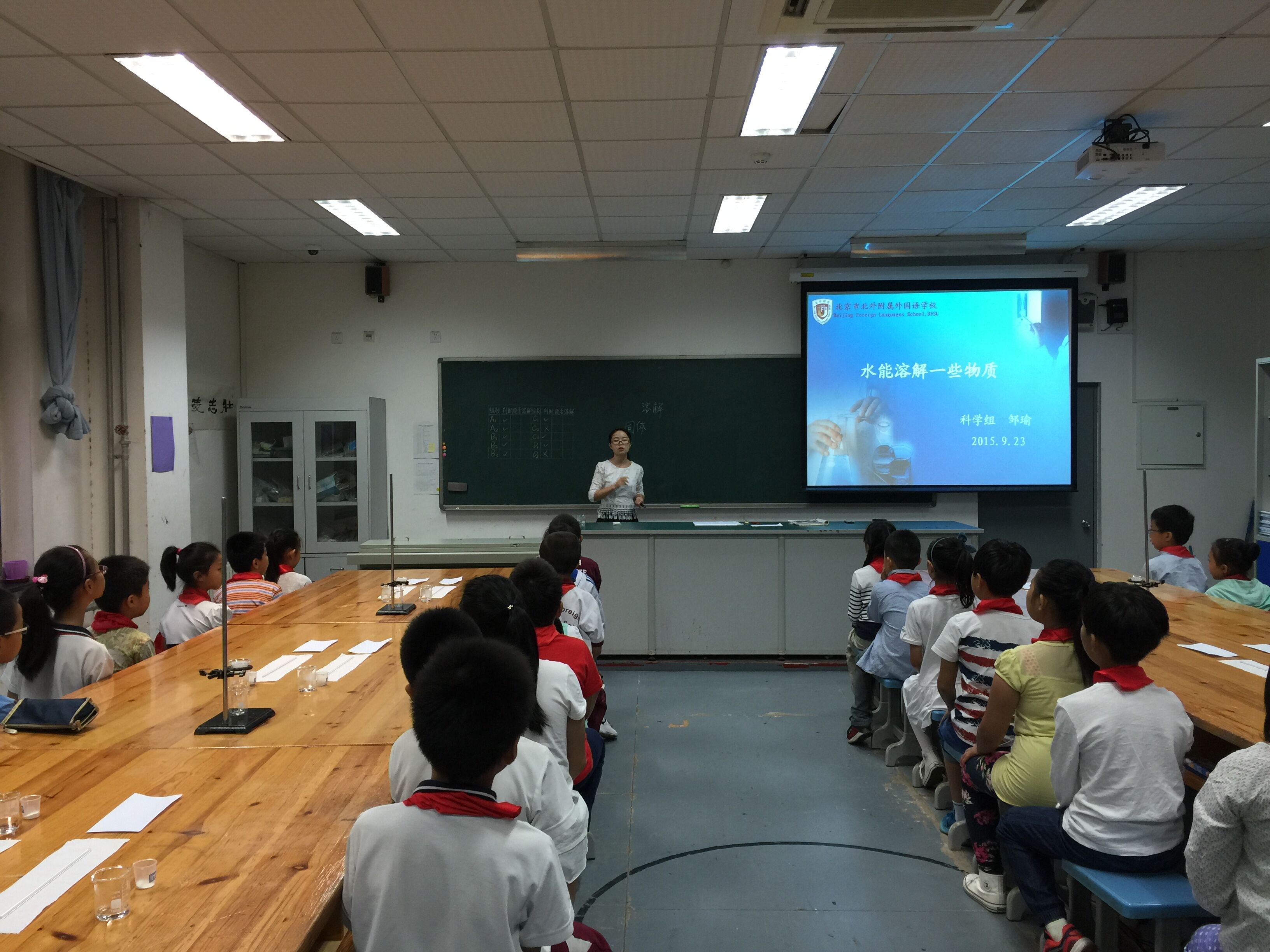 9月23日科学组教师走进125教室,在骨干教师——邹瑜老师课堂上进行了《水能溶解一些物质》课程的学习。