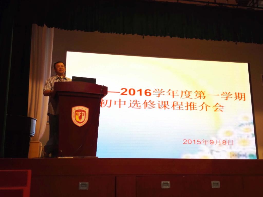为了让学生在选课之前更好地了解课程内容,于9月8日下午在国瑞厅举行了初中选修课程推介会。来自校内外的20余位老师向初一、初二年级全体学生做了图文并茂的课程介绍。每位教师各显其能,或现场激情演讲,或自带器材给学生演示实验,逐一为学生介绍课程。首先,复语组的潘铎轩老师针对学校的特色课程——复语课程进行生动的介绍和讲解,同学们都颇有兴致地认真倾听着。随后科技课程的介绍更是把推介会的气氛推向高潮,一组组妙趣横生的动画和图片,一个个精彩纷呈的课程活动让同学们仿佛置身于精彩绝伦的课程之中。艺术类的课程也是人气颇高,我校艺术中心总监纪芳老师介绍的艺术课程有合唱、国画、书法、齐派篆刻、微电影等,使大家感受到了非凡的艺术风范和文化气息。接下来推介的是体育类课程,本学期在原来传统体育项目的基础上,新开设射箭和迷你高尔夫课程,同学们跃跃欲试,希望早一些在场上一试身手。最后,宿管中心副主任李丹老师介绍心理世界探秘课程,希望学生在学习和生活中保持乐观向上的情绪,健康快乐的成长。在推介会上,各位老师向同学们详细地介绍了课程情况,为同学们科学合理选课奠定了基础。推介会后,同学们兴趣盎然,积极选报“自己的课程”,盼望着选修课开课的这一天。