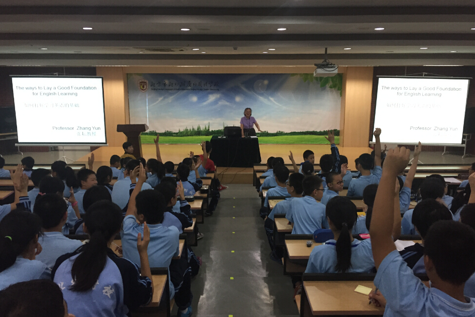 9月17日,北京外国语大学知名英语教育专家张耘教授莅临我校,为新入校的初一学生进行英语学法指导讲座。出席讲座的有我校初中校长张继军,初一年级部主任和各班班主任以及初中外语教师。讲座由初一年级英语备课组组长李广智老师主持。