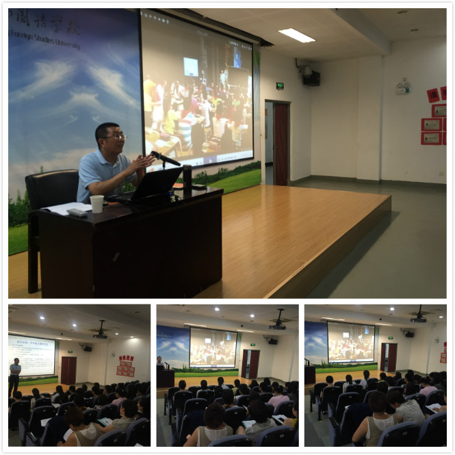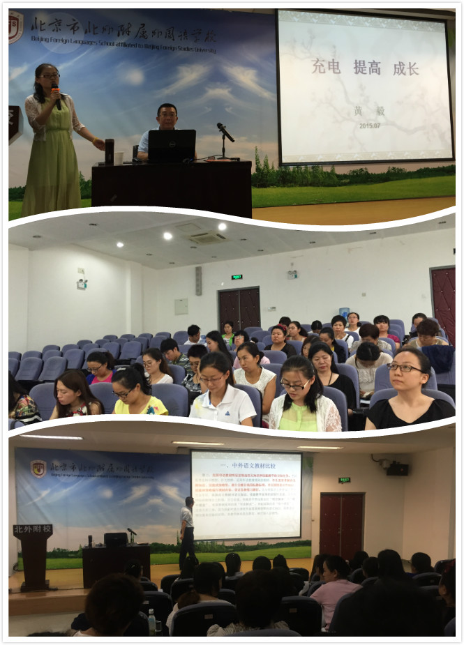2015年7月8日下午,北师大国培专家、海淀区小学语文教研员黄毅老师又一次来到我校指导语文教学工作。本次会议由语文教研组长王君主持,北外附校小学副校长孟娜和全体语文教师参加。会议内容主要围绕三个方面展开:一、黄毅老师解析中外语文教材的对比;二、他带领全体语文老师观摩全国赛课特等奖优秀课例并进行有针对性的点评;三、黄毅老师对语文教师们的暑假安排提出了几点期望。