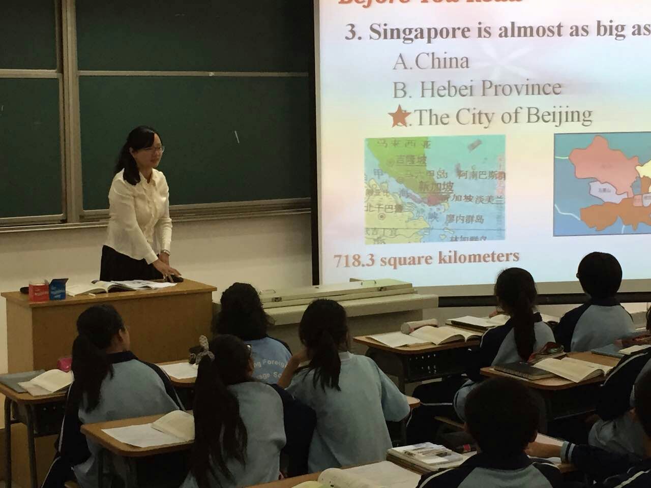 为了提升英语教师的教学水平,切实提高教学实效,我校初二年级在初中英语教研组的大力支持下,于6月9日,作为东道主,在录课室开展了“同课异构”教研活动,特别邀请矿大附中以及北部新区实验学校的优秀青年教师同上一节英语课,并请海淀区英语教研员林萍老师莅临指导,本次活动也得到了参与学校的重视,三所兄弟学校初二年级英语教师全员参加,我校校长助理,初中部副主任杨磊也参加了本次活动。