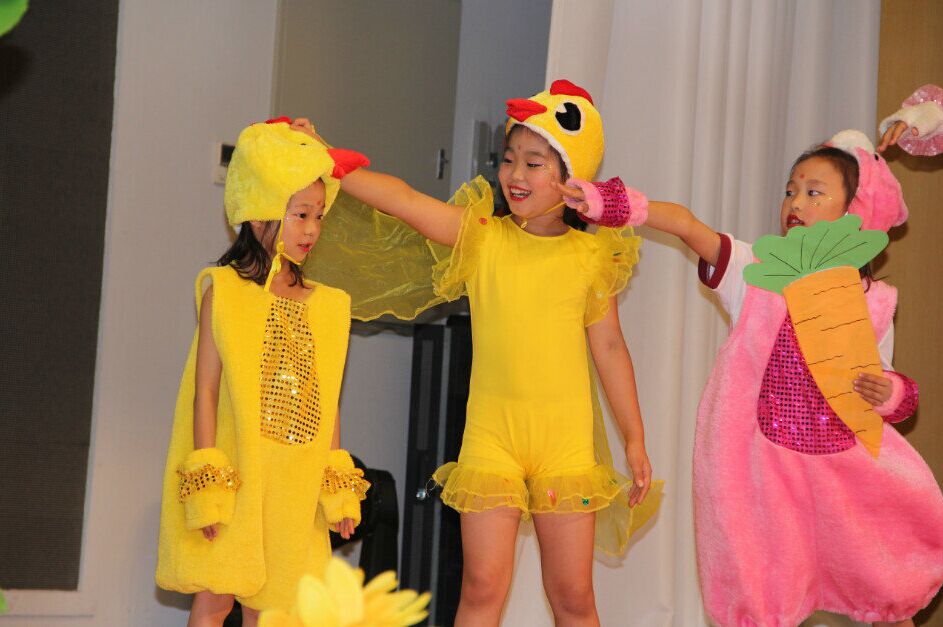 而接下来由朱小玲及贺旭两位英语老师带领学生们排演的英语小话剧“Little Red Hen”更像是一场视听盛宴:精美的舞台道具和服装,小演员们纯正的英语发音、流利的台词以及恰到好处的肢体动作与表情,都深深的吸引着台下的观众,纷纷竖起了大拇指。