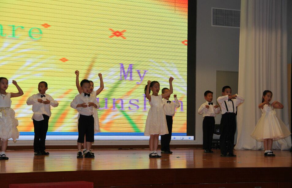 此次活动以两首英语歌曲唱跳“I Have Two Hands”及“You Are My Sunshine”为开场,不仅展示出了一年级学生的灵巧与活力,更使在场的所有师生感受到了一种积极向上的快乐气氛,很多学生都不由自主的跟唱起来,两首歌曲的演绎将整场活动推入了第一个高潮。