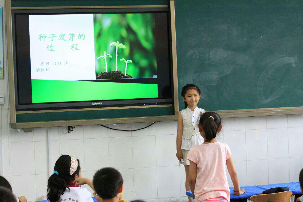 第一个走向讲台的是我们班可爱的李佳玥和帅气的张东五两位同学,她们分别与大家分享了《种子发芽的过程》和《科学好好玩》主题。两个孩子气定神闲、生动有趣的展示了自我认知,老练而灵动的表现充分证明了平日的训练有素和个人才华。这是孩子们的一小步,却是人生中的一大步。每个孩子在输出自我体验和接收别人观点的过程中,逐步产生自信、逐步融合重塑、逐步成长为最好的自己。