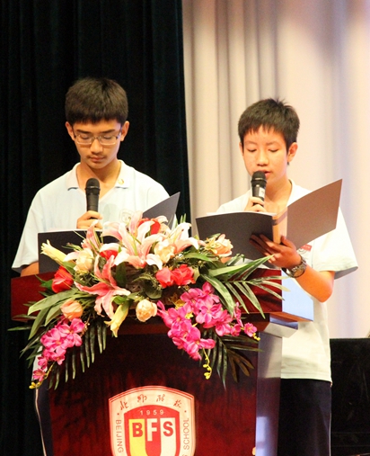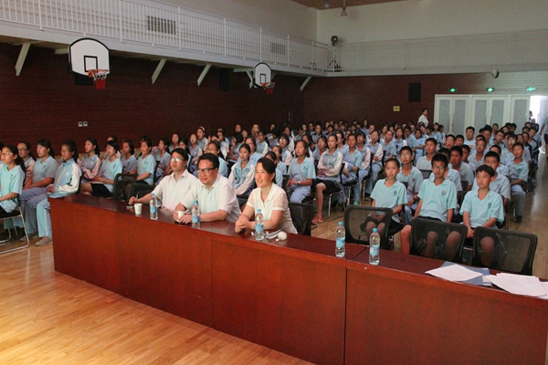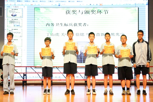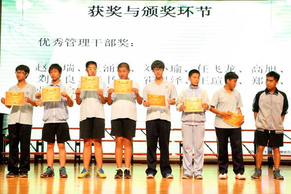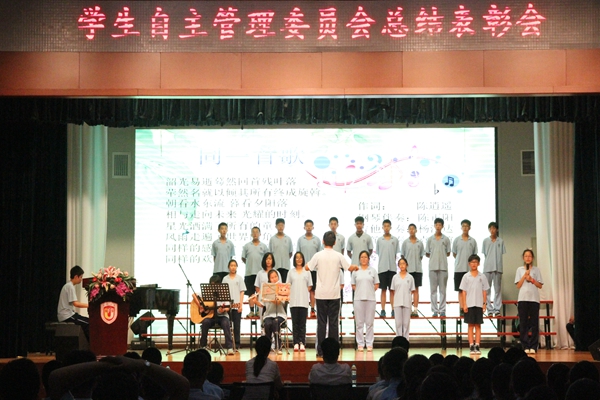 2015年6月1日中午,我校在国瑞厅举行了宿管中心第三届学生自主管理委员会阶段性总结及表彰大会。我校校长林卫民,校长助理杨磊,宿管中心主任朱志艳带领初一、初二年级全体住宿学生参加了本次大会。