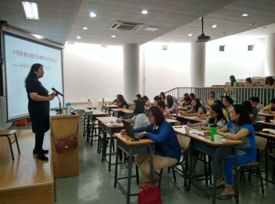 5月20日,小学部全体英语教师在录课室参加了一场关于《英语功能意念概述与小学英语功能交际教学》的讲座。此次讲座,我校很荣幸的邀请到了袁昌寰教授,袁昌寰教授是北京教育学院英语教授,北京师范大学和首都师范大学英语系英语教育硕士导师。