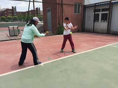 学校网球队学生9名,教练1人,让学生通过网球训练达到其锻炼耐力,反应能力和身体素质,无论是跑,挥拍都是身体毅力的训练,而想要打好网球,首先要有正确的指导,这样才能有良好的发展。我队侯鹏同学获得2014—2015赛季“匠心之轮杯”国际青少年网球排名总决赛U12男子单打第三名的好成绩。希望以后,通过训练其他同学能够取得更好成绩。