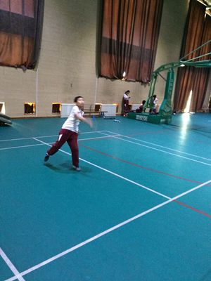 我校一直以来把羽毛球运动作为一项群体性运动进行推广,并组建了羽毛球校队,要求人手一拍,利用课间、课外活动时间进行训练,在运动中提高身体的反应速度、增加身体免疫力;使身体更加柔韧、更加健壮。在群体活动开展的基础上我校羽毛球队坚持进行长期而又系统的训练以迎接每年的市区羽毛球比赛。