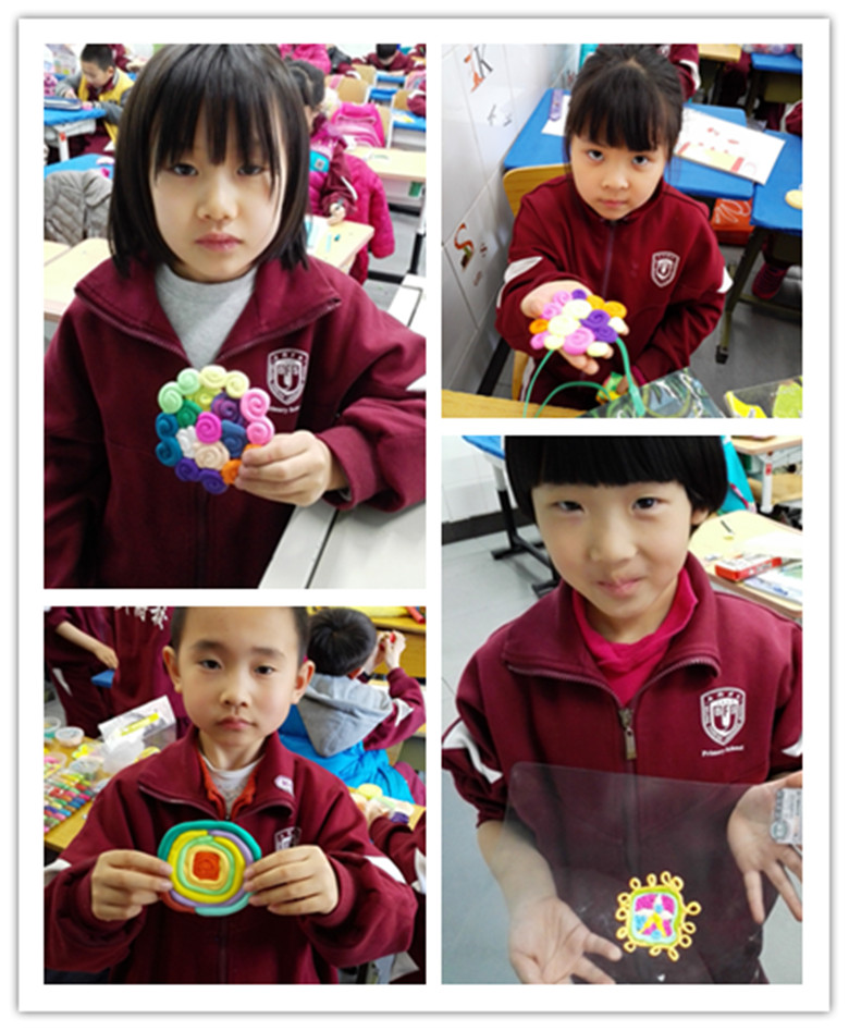 此外,我还引导学生进行不同造型、材料、制作方法的尝试,给予学生更广阔的制作空间。比如,在花垫内容造型的呈现上要丰富多样,可以是具象的花样,也可以是抽象的花样。这样一来,学生制作的积极性更高了,在玩中学,在玩中感受快乐,丰富体验、学习技能、分享成果,美术课变成了学生发挥创意的小天地。