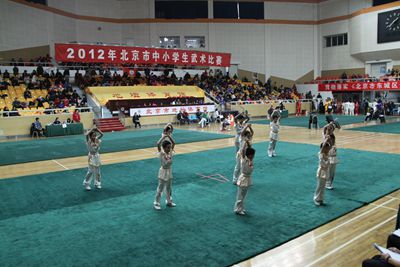近年来武术队获得主要成绩获得北京市、海淀区武术比赛前三名共计29人次,北京市武术比赛集体第三名,海淀区武术比赛集体第五名。目前存在的问题与不足:由于武术队训练场地为国瑞厅,而国瑞厅作为学校的多功能厅往往承担很多的表演以及会议任务,这样一来武术队的训练场地就无法保证;其次就是武术队训练时间为每周一、四的中午学生休息时间,中午训练有很大的问题,因为学生们刚用完餐,所以在运动量上也不能得到保证。对于目前武术队存在的问题武术教师向校领导求援,希望能够尽快得到解决。