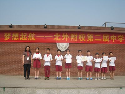 2008年北外附校开设武术选修课,经过两年的积累和沉淀,2010年正式组建武术队,在校领导的大力支持、教练员严格管理和科学训练加上队员们的刻苦努力,队伍的技术水平提高很快,自附校武术队成立以来屡获市、区级比赛多个项目的冠军。武术队的队员全部来自附校武术选修课,附校武术队在2011年的北京市中小学生武术比赛中一鸣惊人,夺得小学组五个项目的冠军,同年武术队在小学部新年联欢会中也做了精彩的表演,表演十分成功,受到了校领导的一致好评,并在此之后每年学部联欢会中从未缺席。