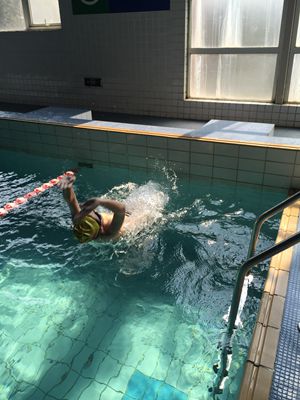 校队利用每周一、三中午12:00~13:30在游泳馆进行训练 ,周一的训练内容: 陆上准备活动:徒手操、拉伸练习;准备部分:400m任意游;技术部分:100m蛙泳; 4*50m自由泳腿;耐力部分:6*50m自单臂;放松部分:100m放松游要求:50m自由泳腿速度快;单臂的腿要打起来;重点:耐力部分按照规定时间一定要坚持下来。周三训练内容: 准备部分:100m任意;技术部分:4*50m自由泳腿 (要求:前1个手放前面打腿 2-3个一只手放体侧,侧面换气 用浮板打最后1个); 4*50m自由泳配合(要求:三下一换气);耐力部分:2*200m蛙泳(转身双手到边);4*100m自由泳划手(夹板)