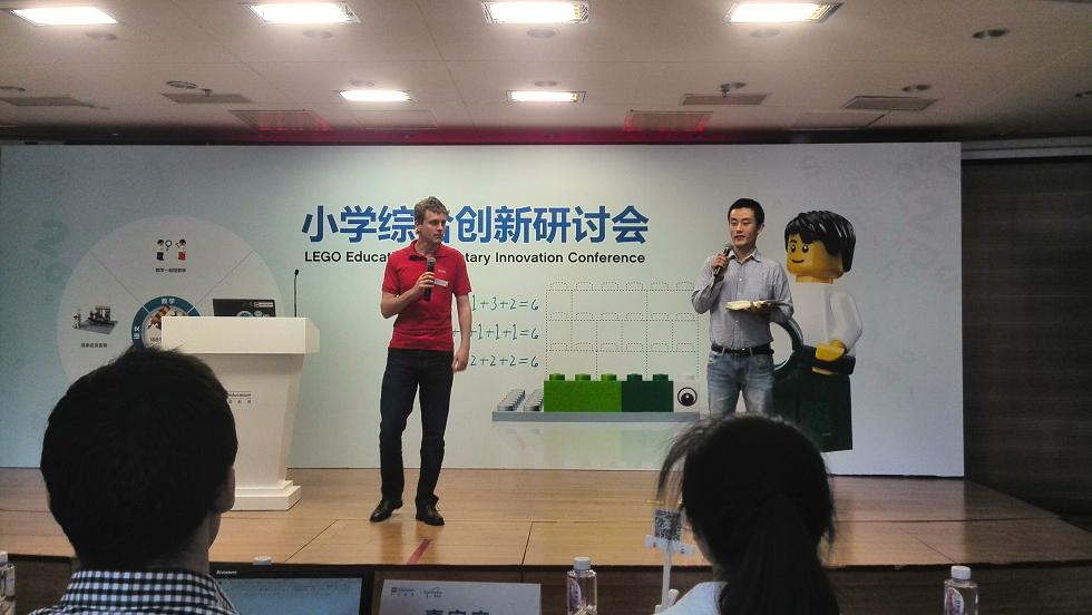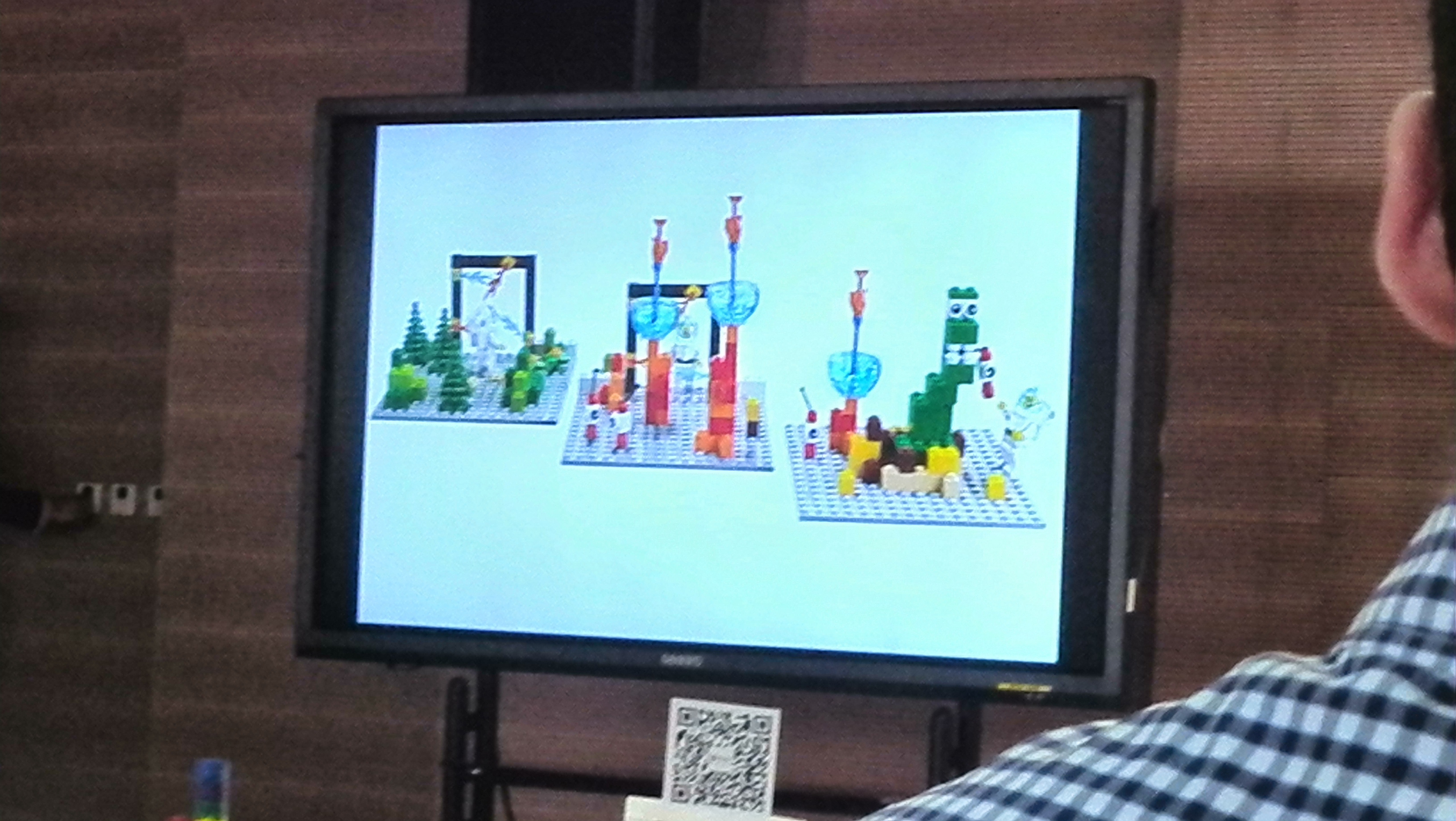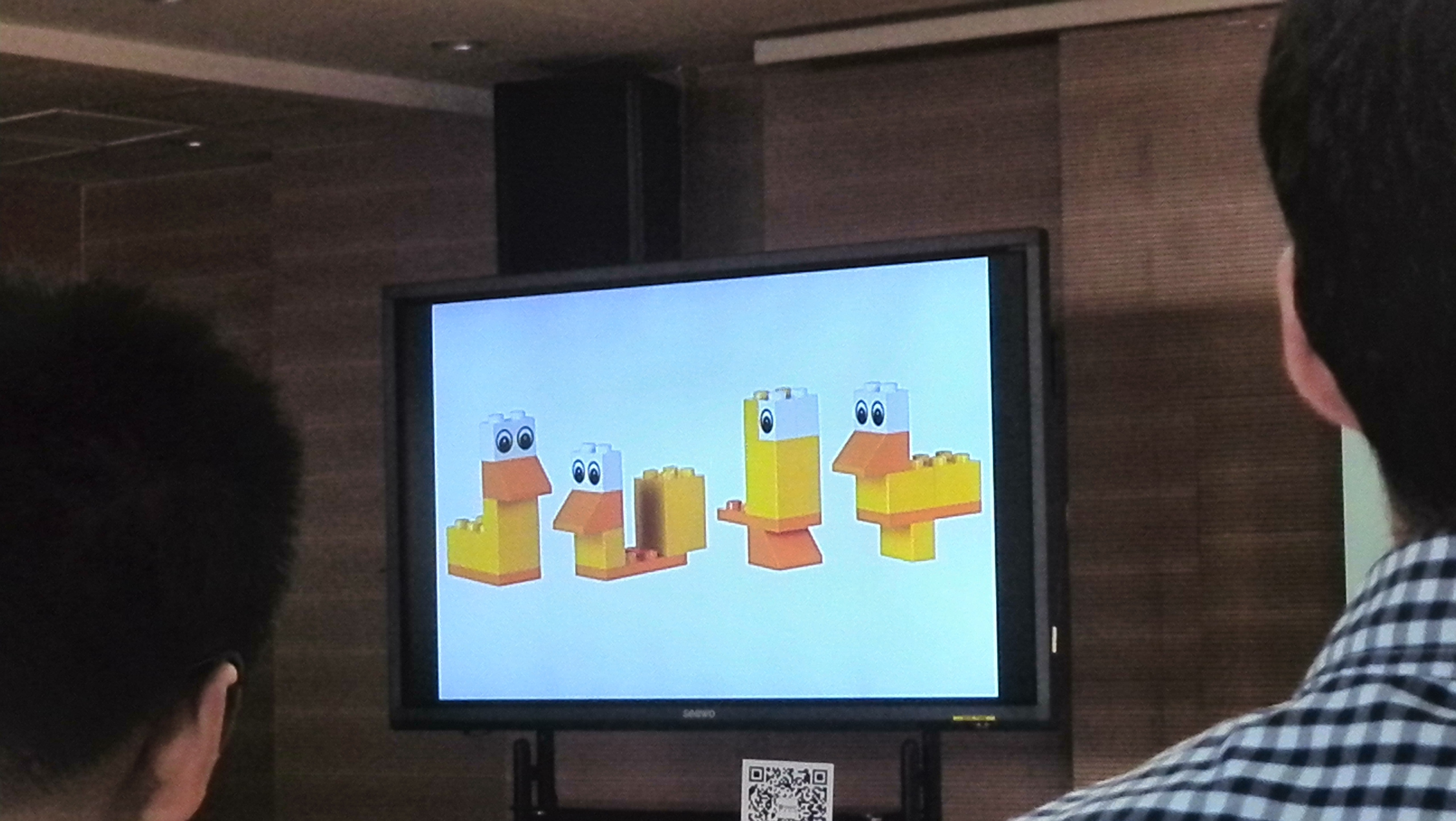 这种学习方法是基于建构主义学习理论的,基于问题的探究学习,让学生不仅能够研究,更能够积极思考如何应用到生活中去。教授举了一个例子,他的学生为一只残疾的小狗制作一个有轮胎帮助行走的小狗。然后让在座教师利用桌上的模块拼出一个小鸭子,每个人组装的小鸭子都不一样,但每个人做得都是对的。