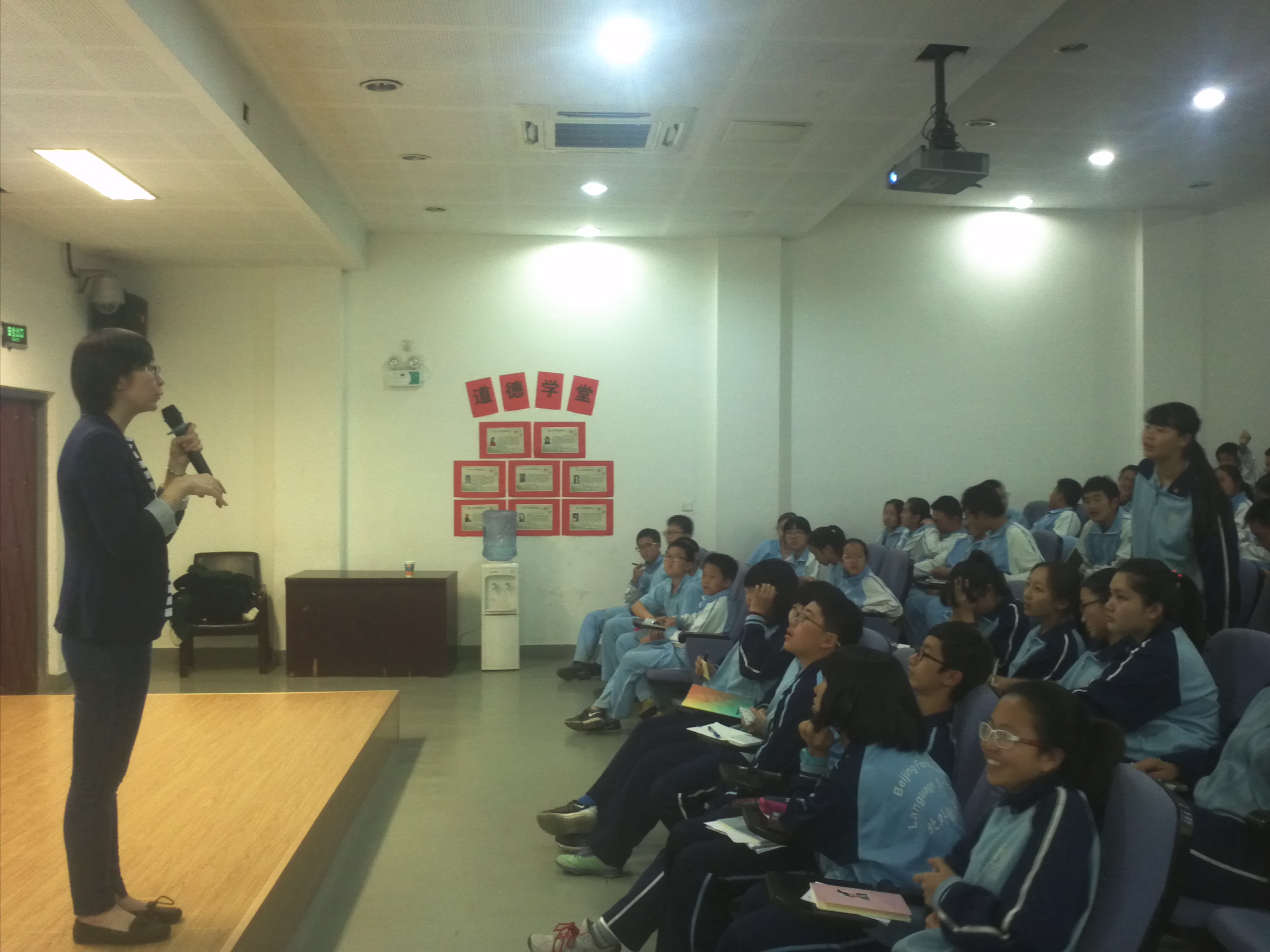 讲座中,王晋炜老师以亲切的口吻向同学们将西班牙的概况娓娓道来:西班牙这个名字的来源、西班牙足球的辉煌历史、西班牙斗牛士的服饰特性、西班牙皇室的家庭关系……这一系列生动而有趣的奇闻轶事,激起了学生们极大的学习兴趣,更拓展了大家的课外知识面。王老师循循善诱,时不时以知识竞答的形式,与在座的同学们进行交流互动,大家纷纷踊跃发言,并同时将自己了解的西语相关知识反馈给王老师。现场气氛活跃、趣味盎然。讲座结束后,王老师还与学生们展开了20分钟的提问交流环节,就初一学生在学习方面的问题及初二学生在留学方面的问题作了耐心的指导和解答。最后,大家以热烈的掌声感谢王老师今天带来的精彩演讲。