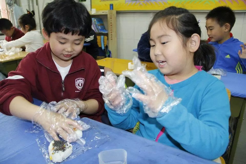 第三位家长是毛彦钧同学的妈妈,彦钧妈妈曾在日本生活学习七八年,对日式饭团制作很拿手。课堂上,彦钧妈妈从《桃太郎》的民间故事,为孩子们介绍日式饭团的起源,孩子们听得津津有味。此次活动,家长们准备了制作饭团的米饭、模具和一次性手套。孩子们在听完故事后,更是对饭团的制作充满了好奇。在彦钧妈妈的一步步指导下,孩子们开始大厨师的体验。课后,孩子们用锡箔纸把自己制作的饭团包好,放在饭盒里,带回家和家人一起分享。