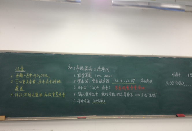 此次考试得到了学校领导的高度重视。为保证考试顺利举行,在接到海淀区相关文件后,我校副校长张继军、德育处主任杨磊给予了极大的关注,并对初三年级全体英语教师、电教老师及计算机老师进行了具体指导。英语教师们充分利用海淀区下发的备考资料对学生进行了辅导,使学生了解了考试的题型和形式。4月7日—10日,初三年级八个班分别进行了口语模拟考试,同学们熟悉了考试时正确的电脑操作并及时解决了突发问题,避免正式考试时出错。