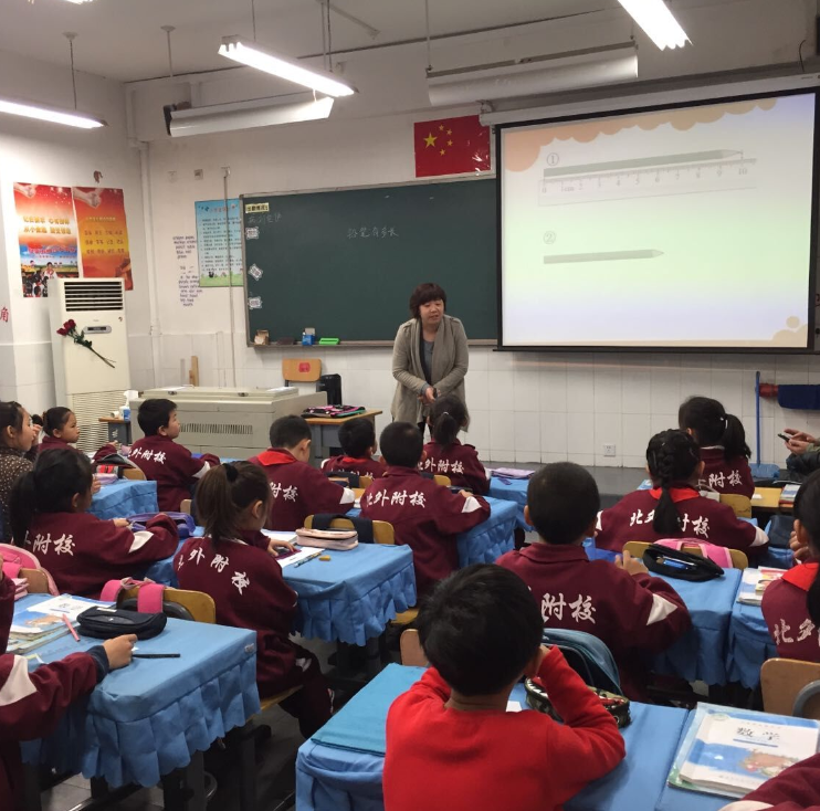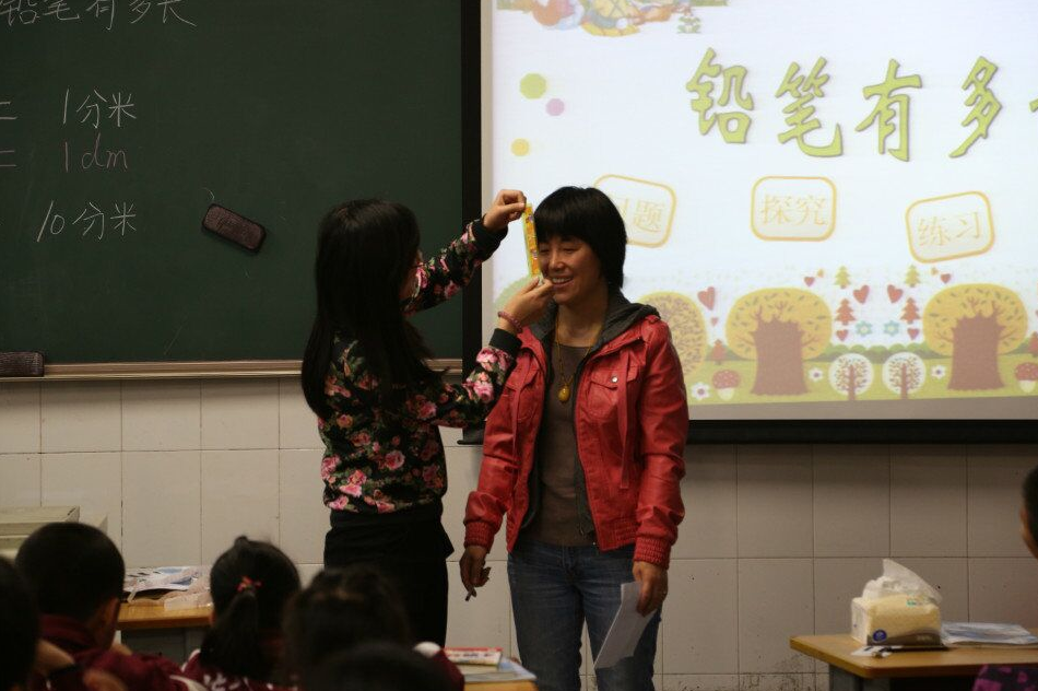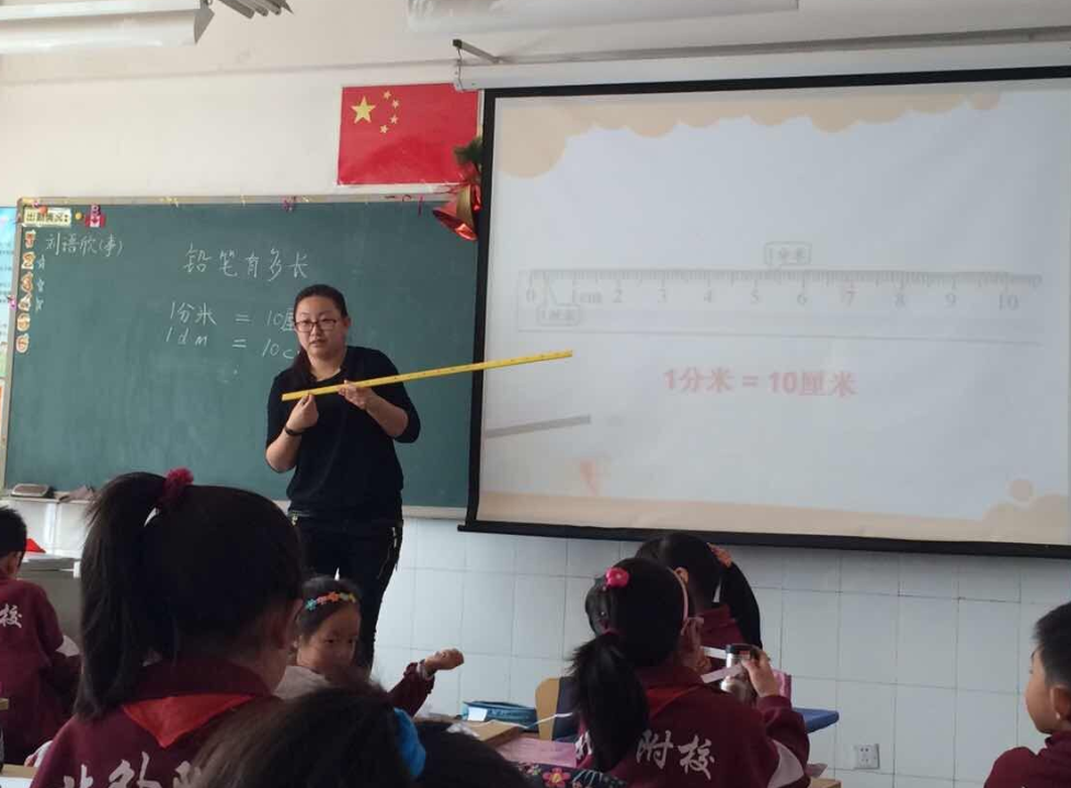 活动之初,老师们经过多次讨论确定《铅笔有多长》一课为授课内容。这节课需要学生进行大量实际测量活动,从中感受到数学与现实生活的联系。数学组的五位老师在备课组长杨秀强老师的带领下,经过多次研究探讨,不断提出改进意见后确定出教案。在一切准备就绪后,展示活动拉开帷幕。