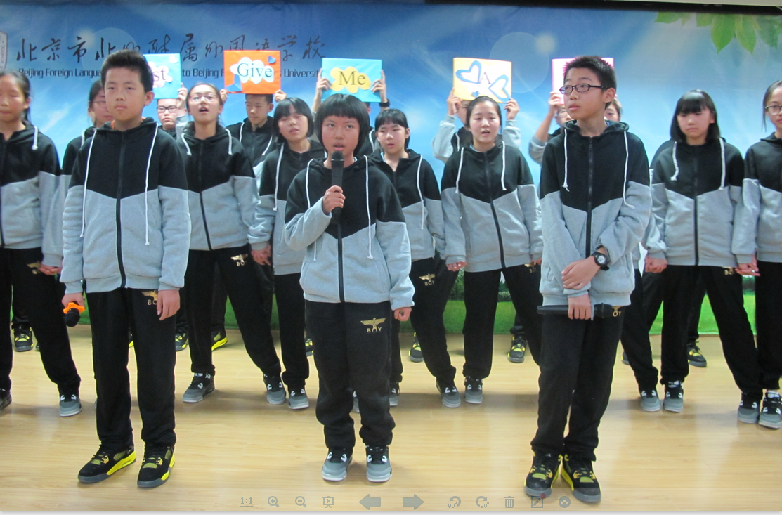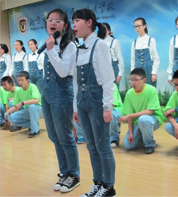 为了庆祝我校第十二届外语节,丰富学生的课余生活,提高学生对英语学习的兴趣,“北外附校第十二届外语节初一年级英语歌唱比赛”于4月1日下午在二阶正式举行。