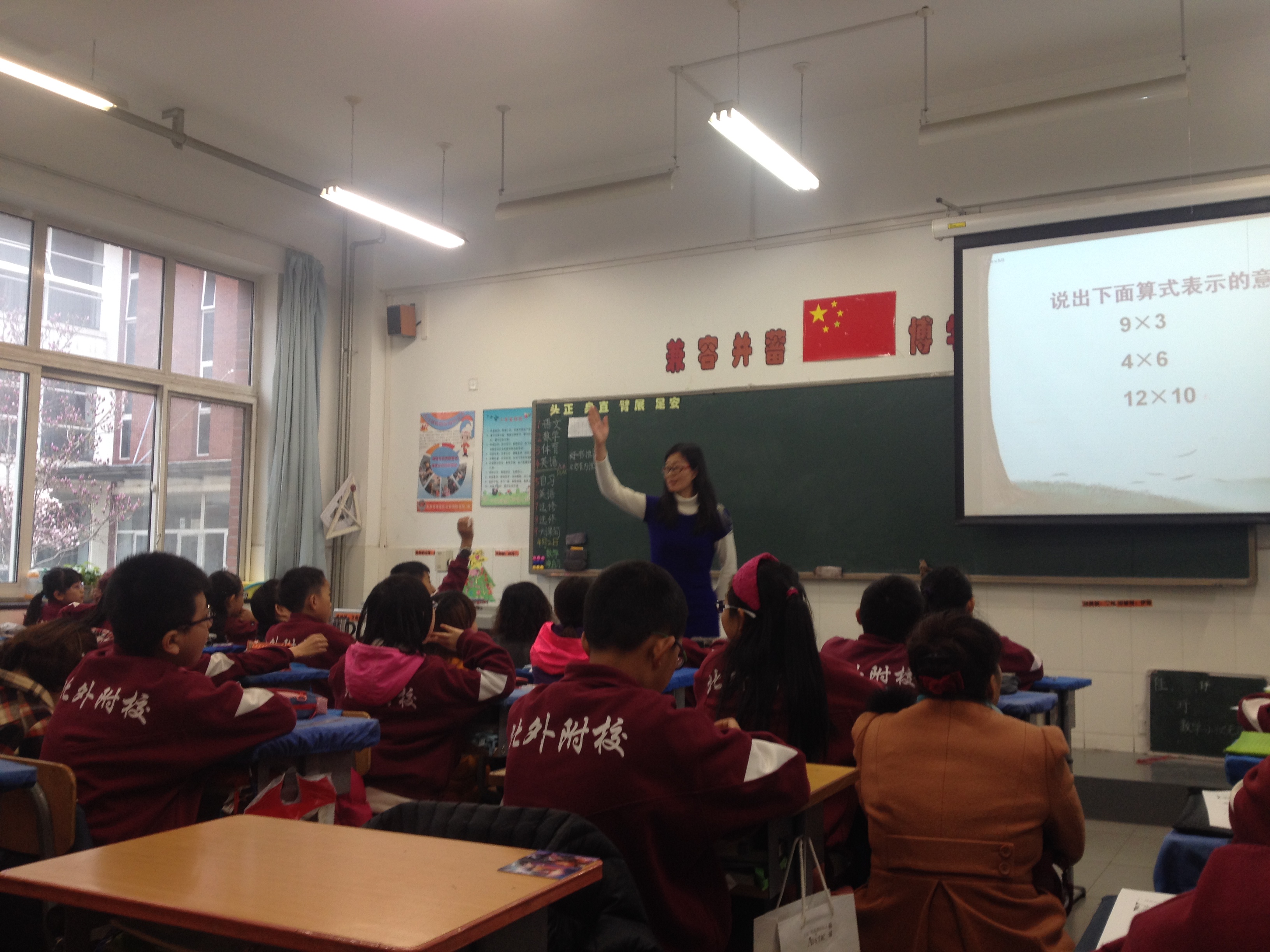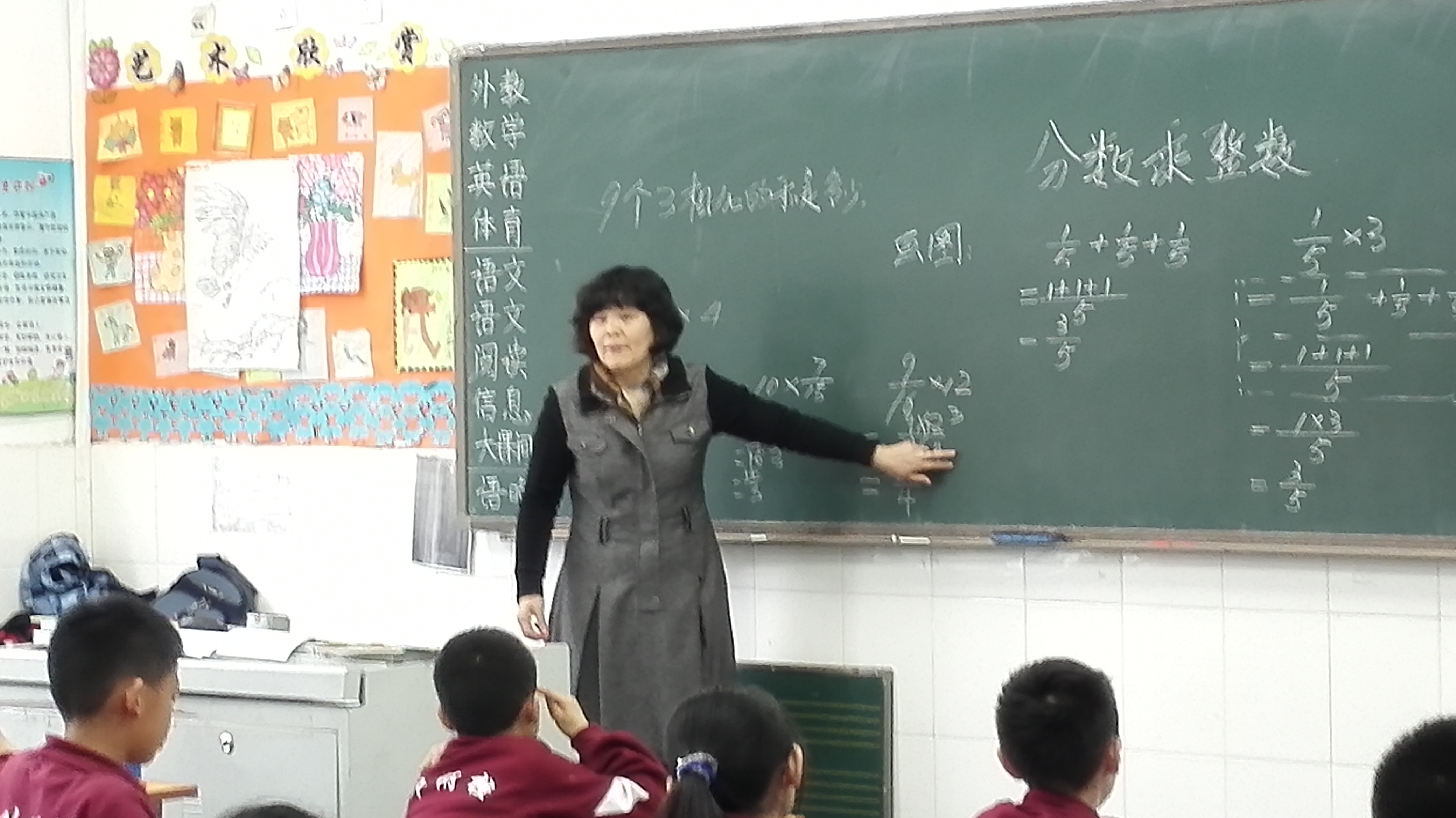 在此次研究课展示之初,老师们开始精心挑选授课内容,经老师们讨论,最后确定《分数乘法》一课为授课内容,这节课不但和教学进度相吻合又能展现学生的自主探究和自主学习的能力。接下来,如何确立本节课的教学目标成为问题的关键,《新课标》中指出:课程内容的组织要重视过程,处理好过程和结果的关系;要重视直观,处理好处理好直观与抽象的关系。为体现这一理念,老师们利用集体备课时间,积极进行思想上的碰撞,有的老师主张将分数乘法的计算方法作为重点,有的老师认为分数乘法的意义是重点,最终大家达成思想上的共识,将这两点都做为本节课的教学重点。随后,老师们又从课程的导入、新知的探究以及练习的选择等几方面,进行反复的推敲,直到本节课的设计达到每个老师的要求。一切准备就绪后,老师们闪亮登场。